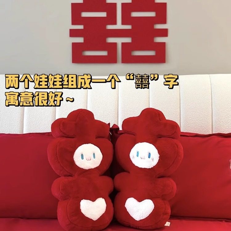喜字抱枕压床娃娃婚礼婚房布置公仔一对结婚新婚礼物摆件婚庆用品