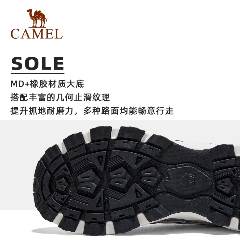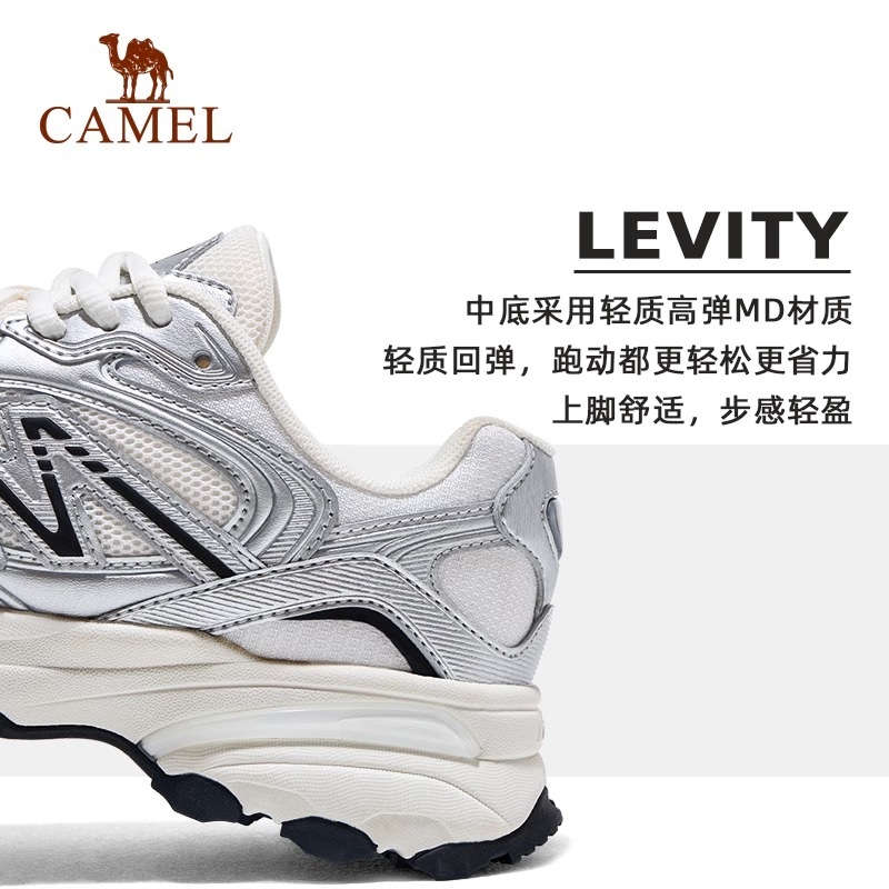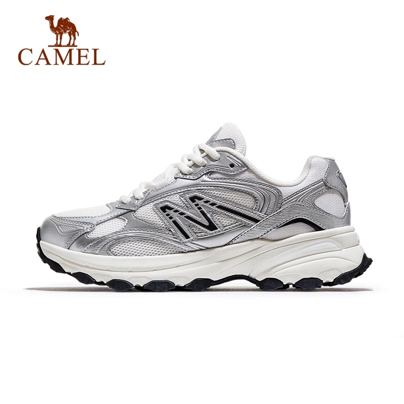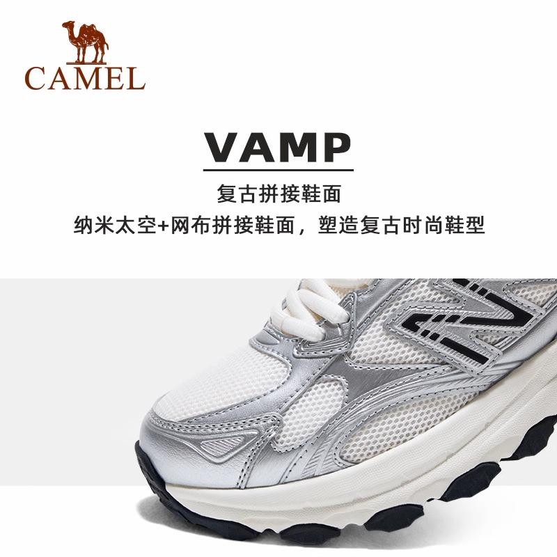 骆驼光波运动鞋女款2025新款鞋子银色老爹鞋复古休闲鞋女鞋慢跑鞋