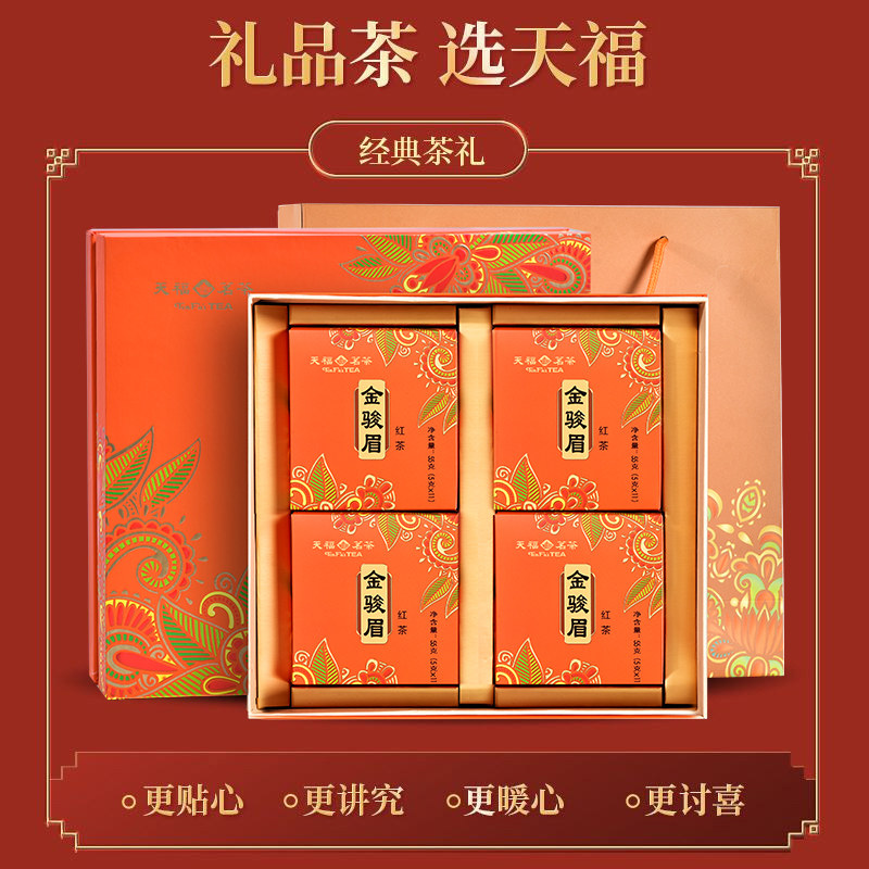 天福茗茶金骏眉特级武夷山小叶种红茶礼盒装220G