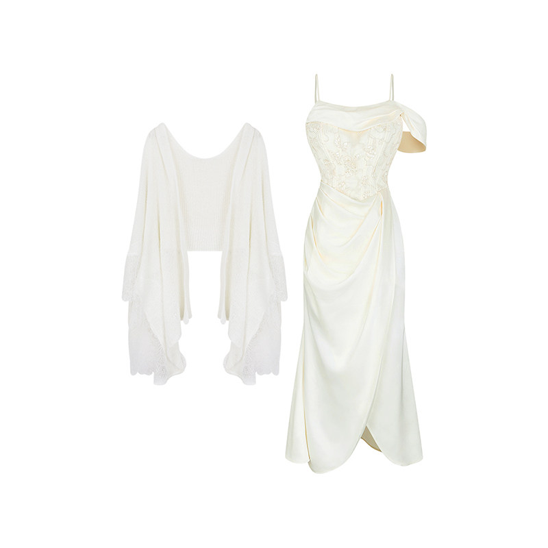 安妮不火 神女感蕾丝刺绣缎面鱼骨礼服裙微胖大码气质千金连衣裙