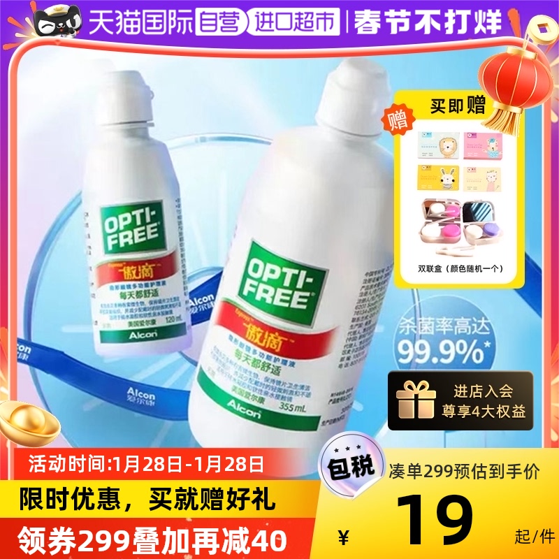 【自营】爱尔康傲滴护理液隐形眼镜美瞳355+60ml清洗液水大小瓶J