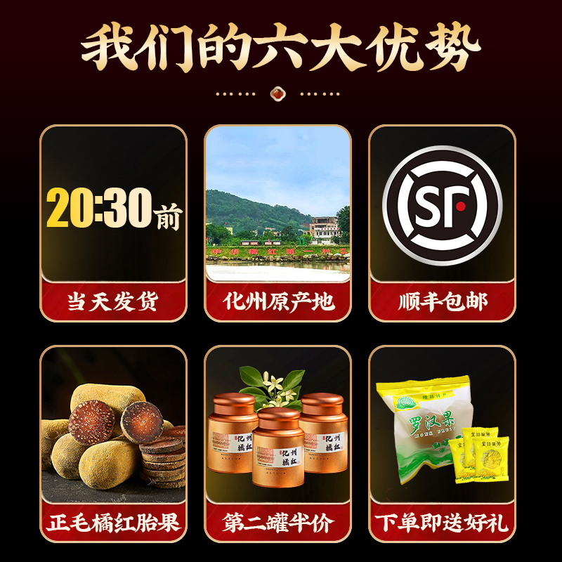 正宗化州橘红官方旗舰店120g满天星桔红化州橘红正毛陈年胎果切片