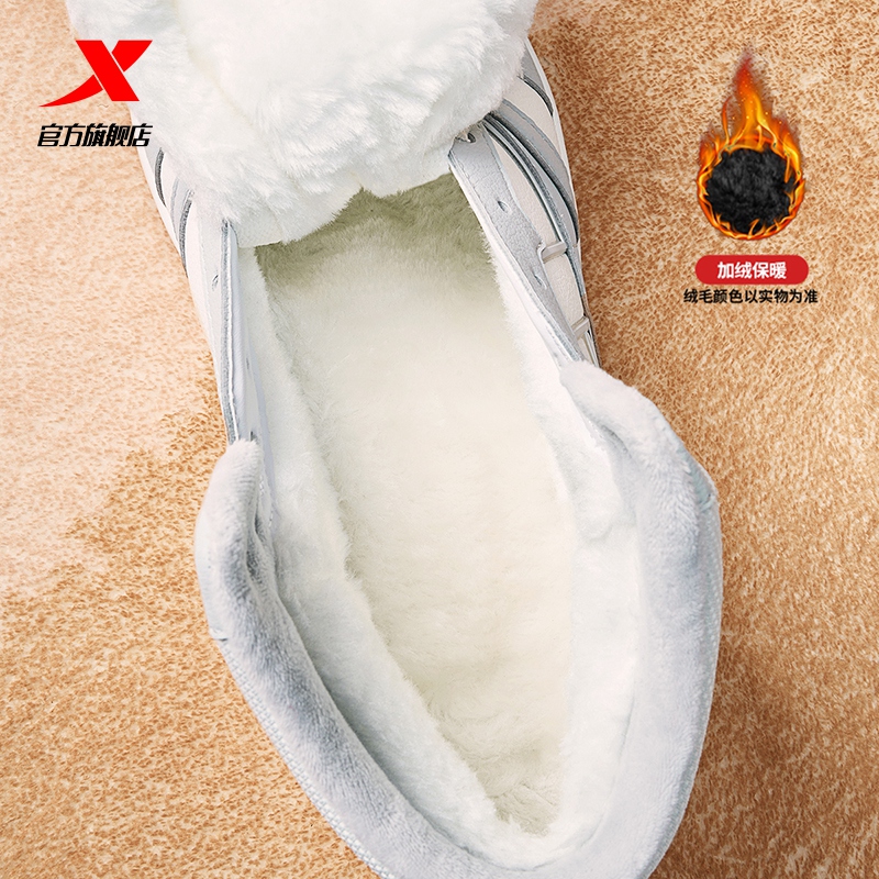 特步革面高帮棉鞋男鞋板鞋冬季保暖加绒运动休闲鞋皮面户外鞋女鞋