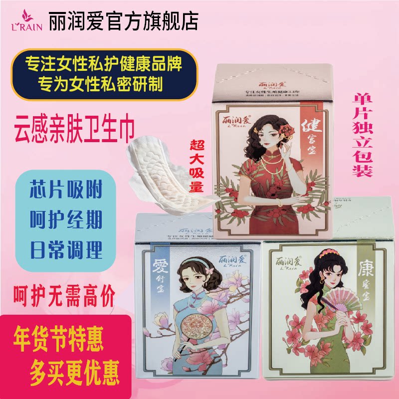 丽润爱卫生调理巾纯棉干爽透气防侧漏日用夜用护垫吸附芯片