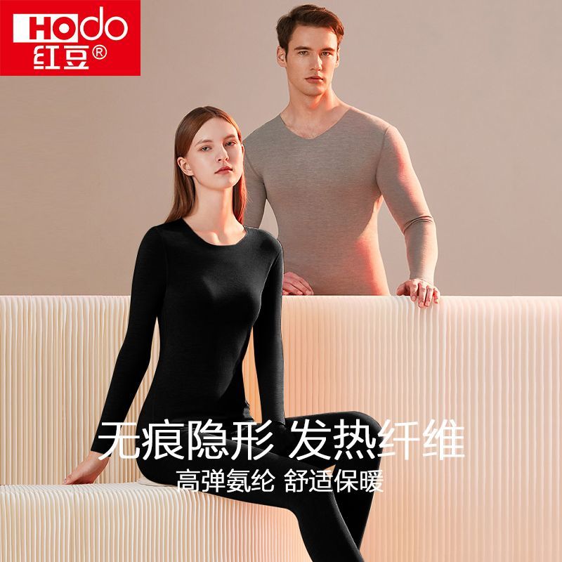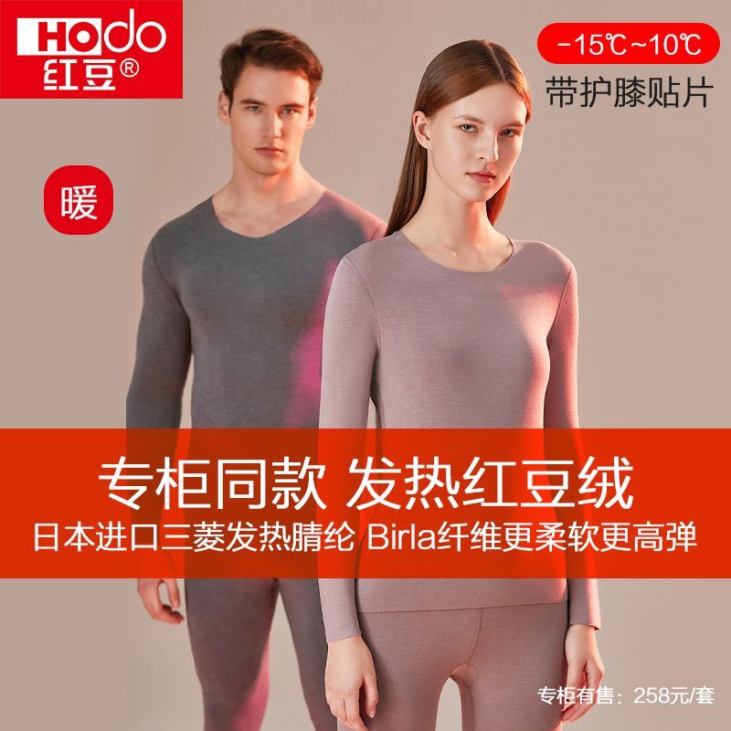 红豆发热保暖内衣套装男女士冬季加厚磨毛带护膝情侣无痕秋衣秋裤