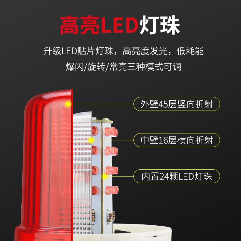 声光报警器12V24V220V380V旋转闪烁常亮可调强光磁吸式爆闪警示灯