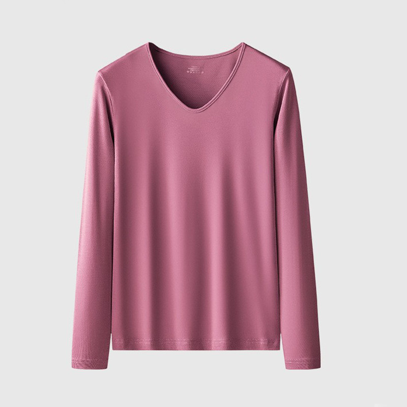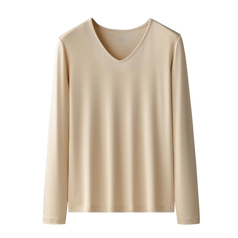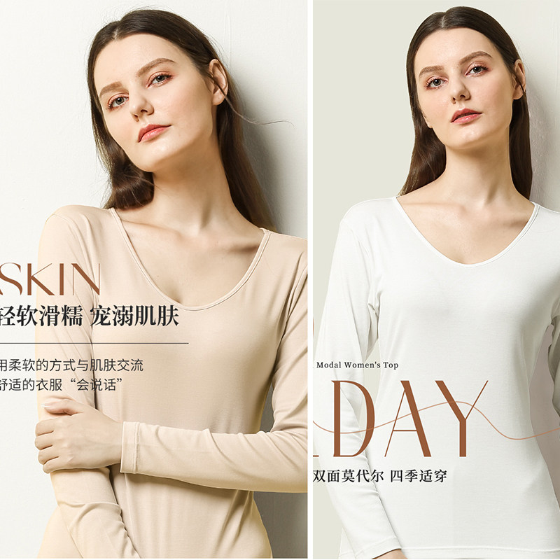 女士植物纤维莫代尔睡衣上装长袖圆领铜氨丝牛奶丝薄款家居服内衣