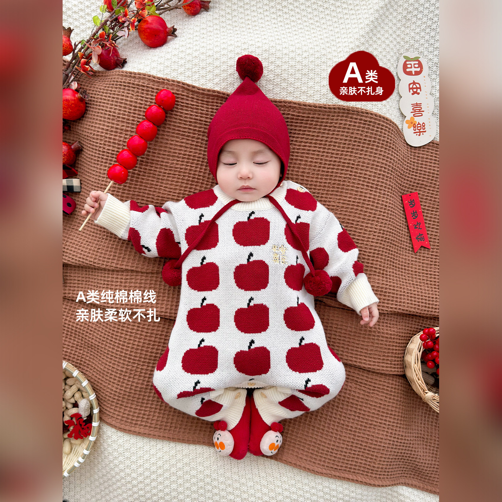 婴儿秋冬衣服冬季连体衣加绒加厚幼儿毛衣新生儿宝宝针织外出爬服