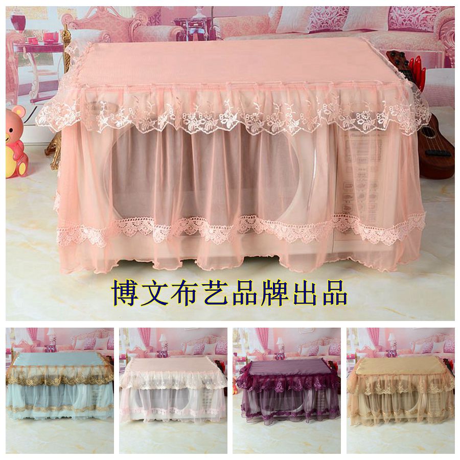 博文布艺品牌微波炉罩烤箱套防尘罩蕾丝盖巾布防尘套蓝色咖色紫色