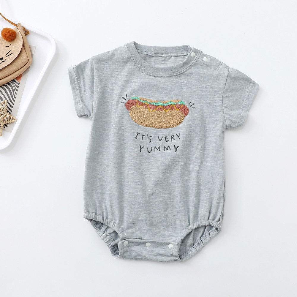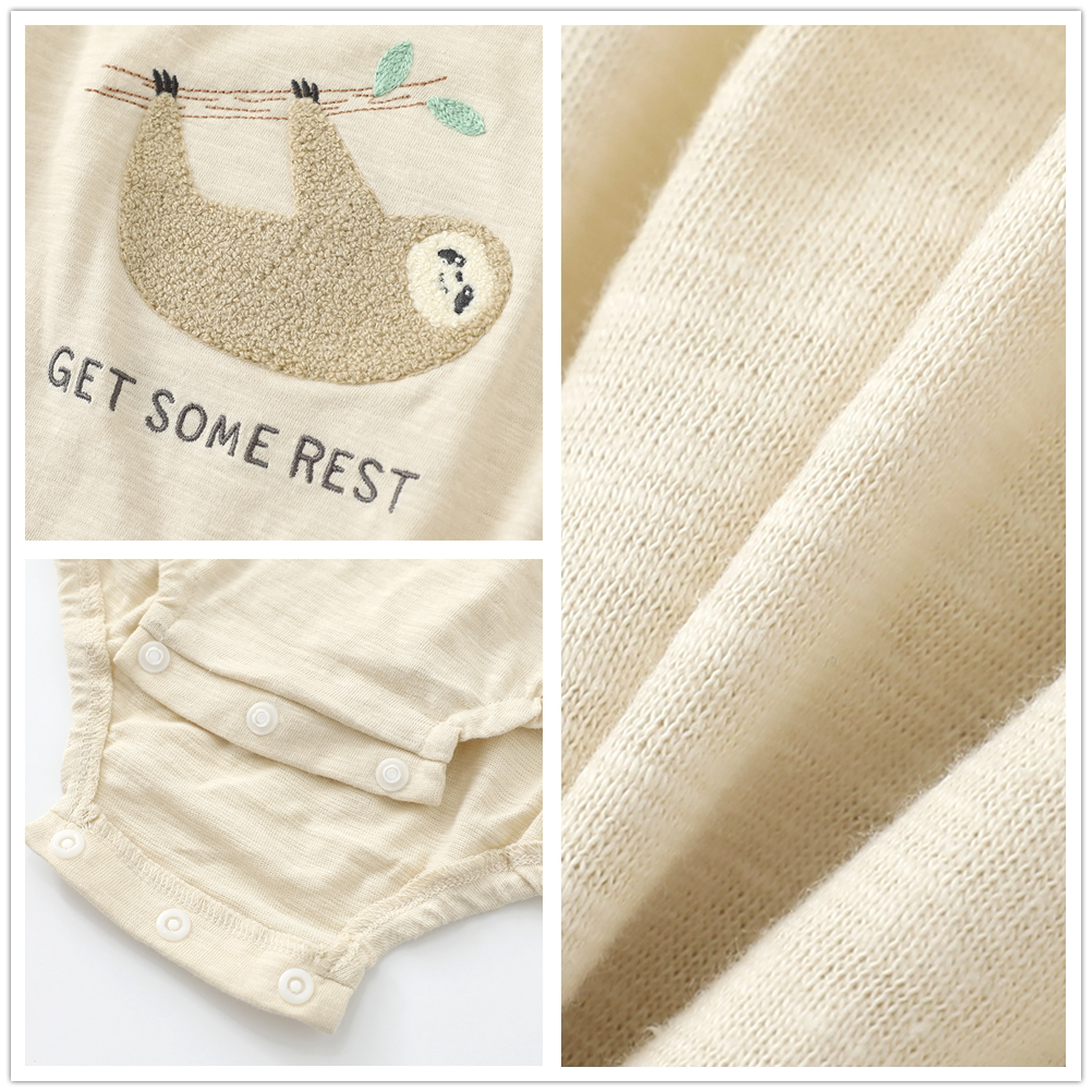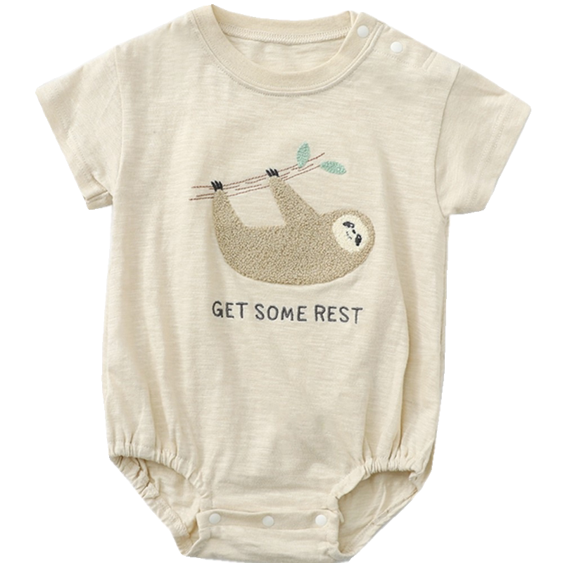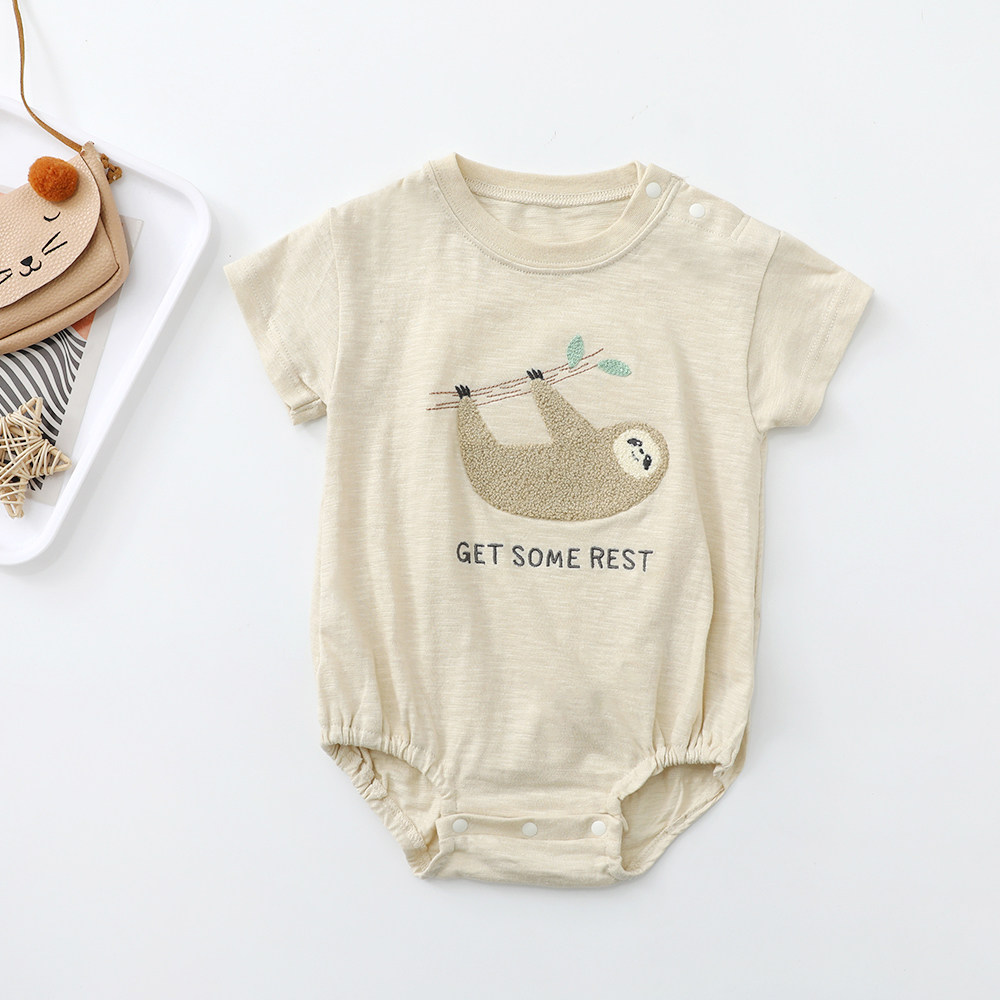 日单70-80婴儿夏季薄软短袖包屁衣树懒竹节棉三角爬宝宝热狗哈衣