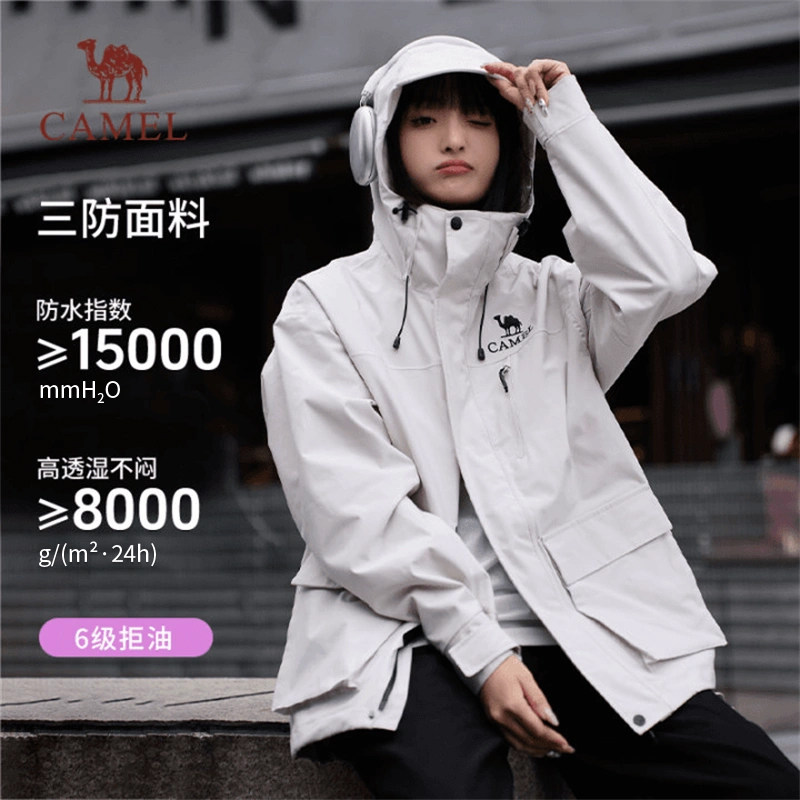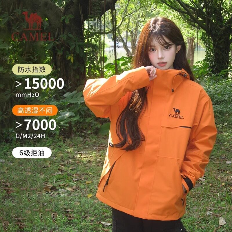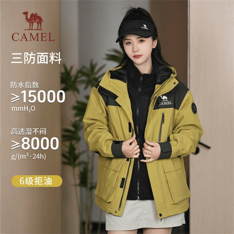 【麒麟】骆驼女装三合一冲锋衣新款秋季时尚抓绒内胆休闲外套