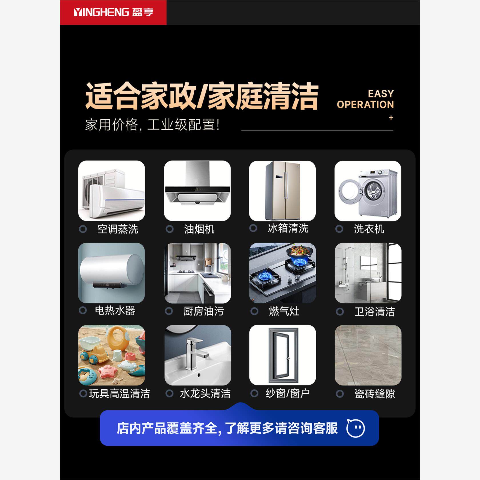 盈亨 家用蒸汽清洁机 高温高压专业清洗家电空调油烟机热水器设备