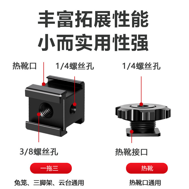 热靴配件金属三头冷靴扩展相机单反通用闪光灯转接3C数码直播支架