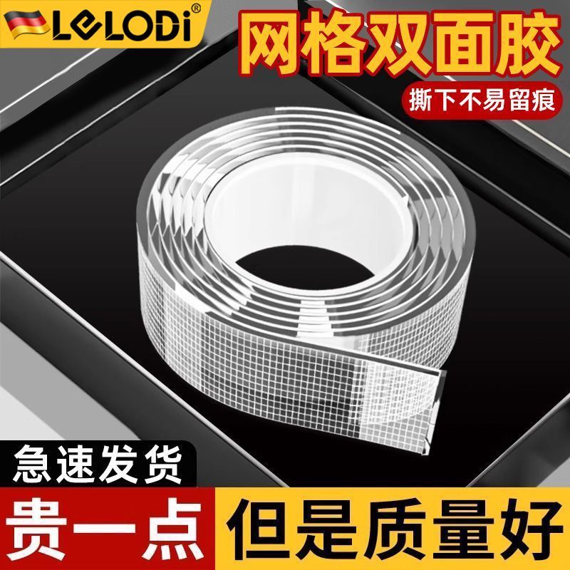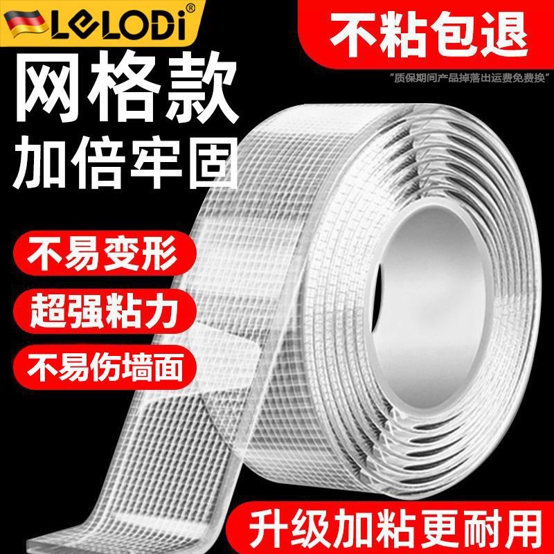 LELODI网格纳米双面胶透明高粘度无痕贴可水洗强力固定墙面免钉胶