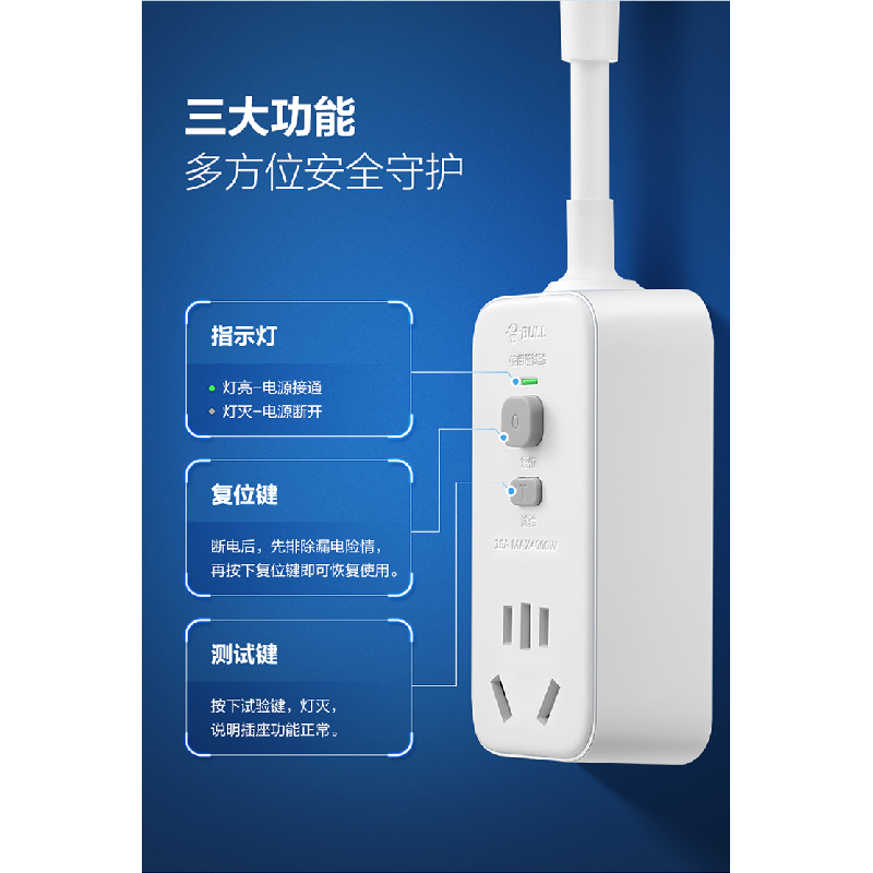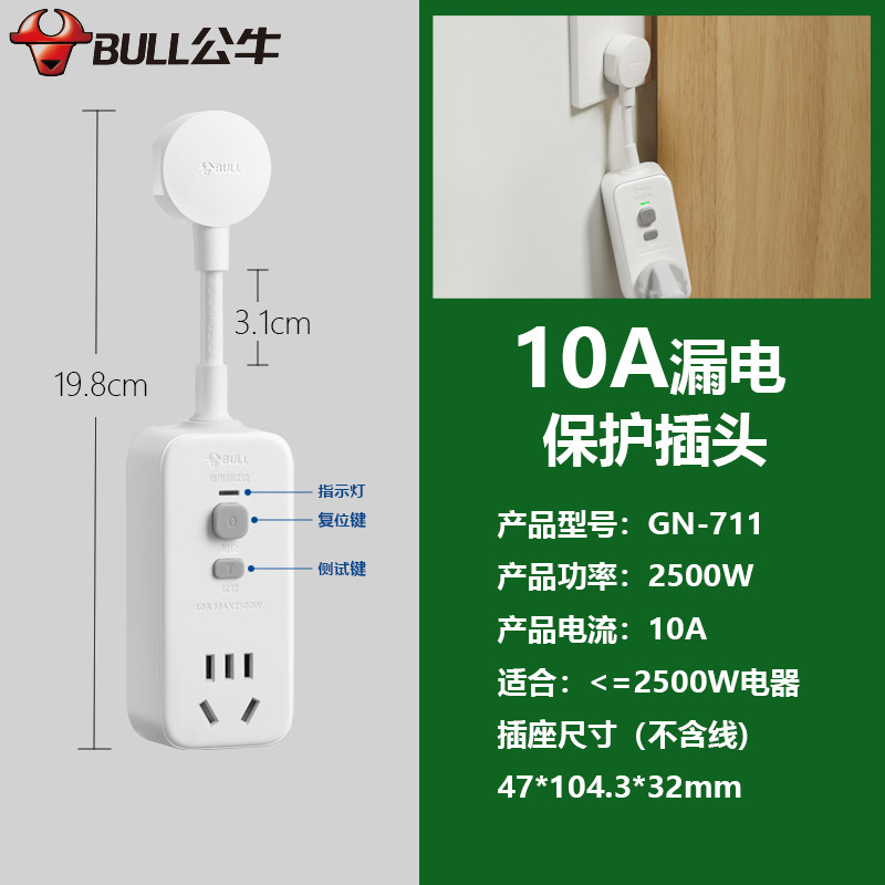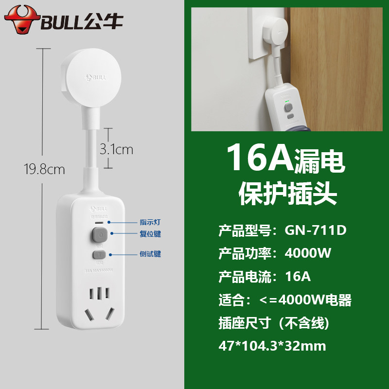公牛防漏电保护器插头10A/16A热水器空调大功率接线GN-711D带开关