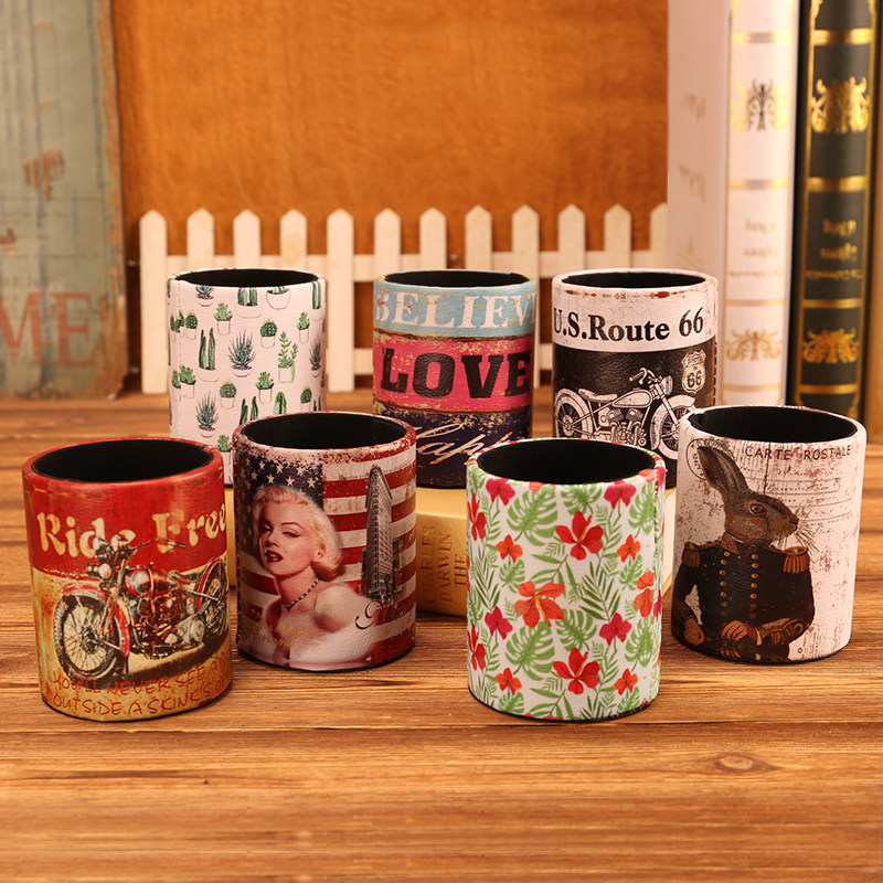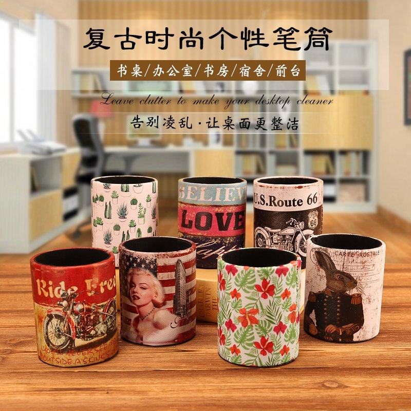 美式复古笔筒轻奢风办公室桌面笔桶高级感学生艺术感大容量收纳盒