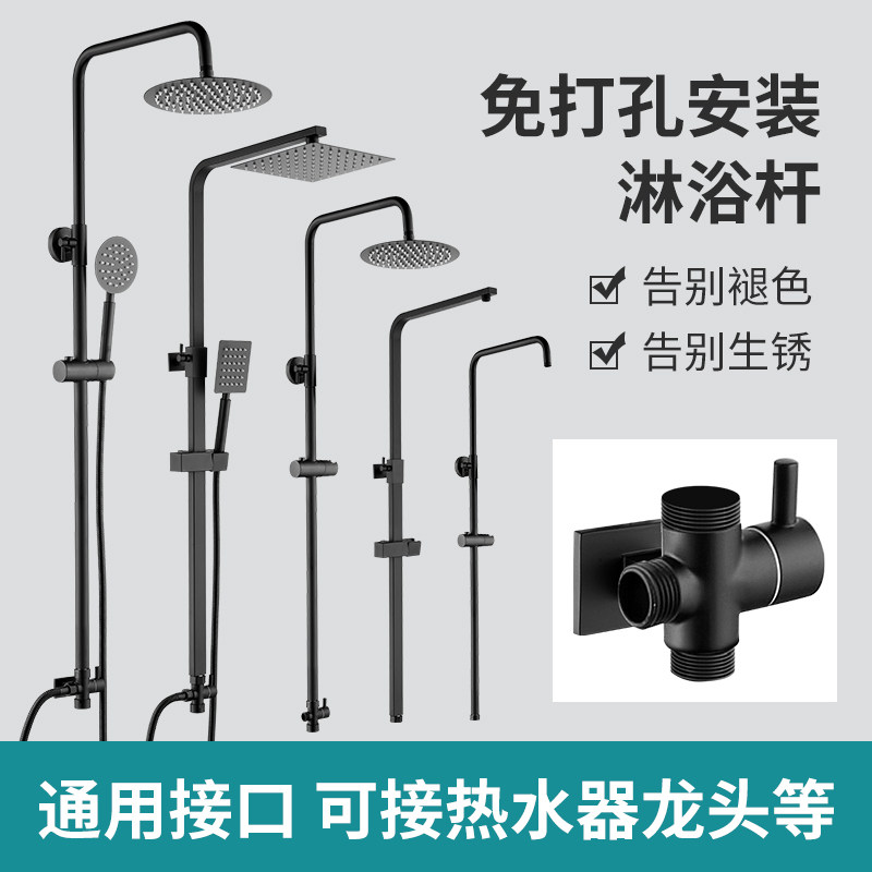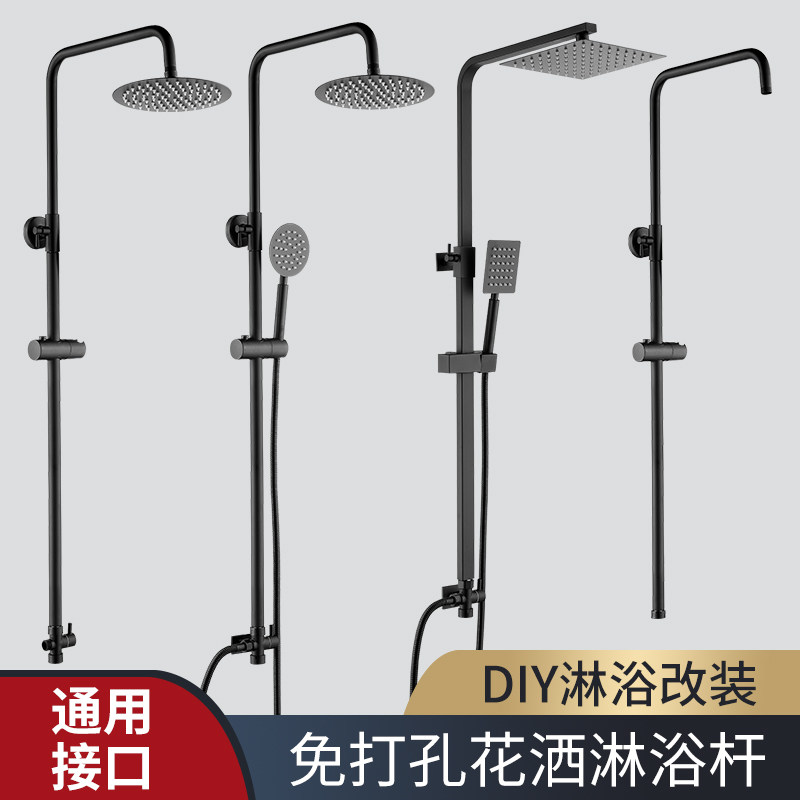 黑色加厚淋浴花洒升降杆改装套装淋浴杆简易支架浴室淋浴升降淋浴