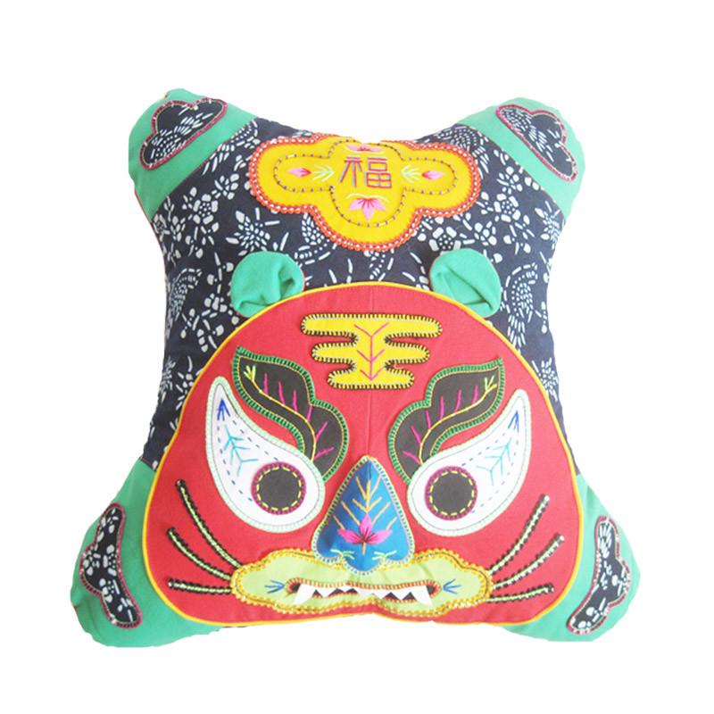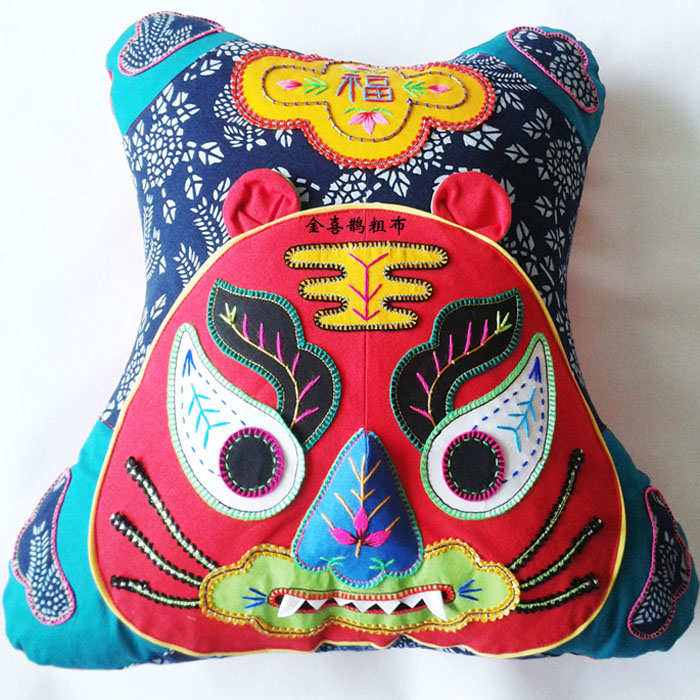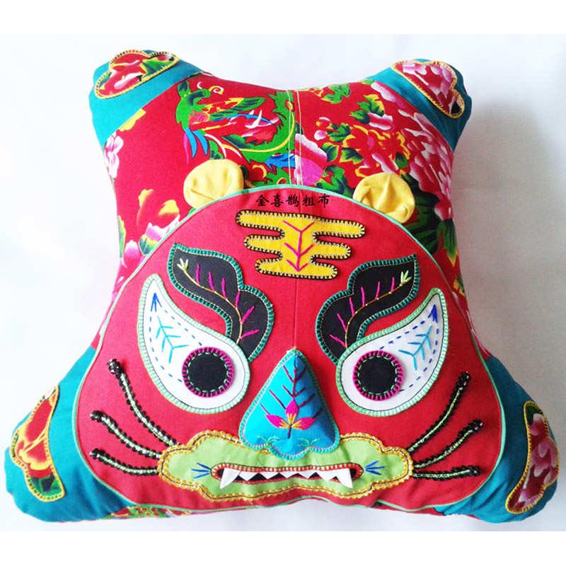 布老虎方形抱枕手工刺绣老虎靠垫特色工艺腰枕飘窗靠垫沙发靠包