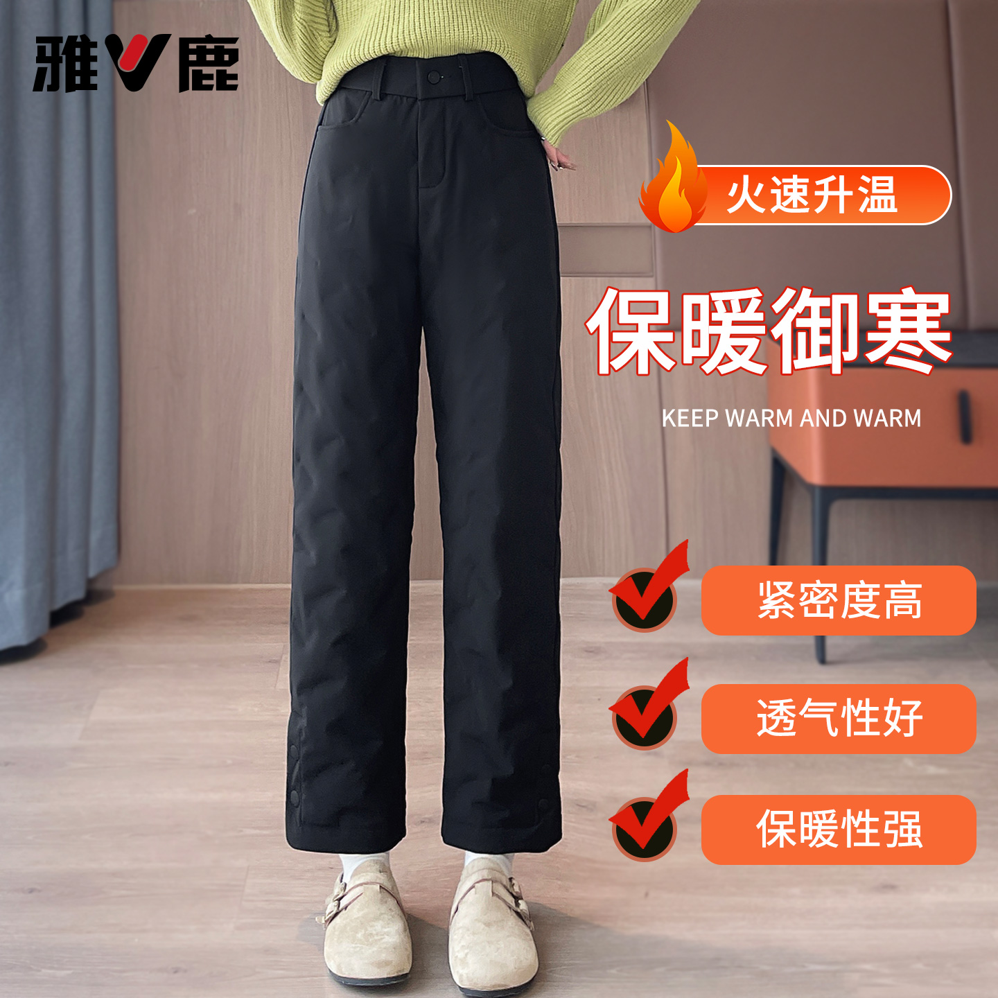 雅鹿羽绒裤女外穿2025新款时尚爆款冬季加厚高腰保暖防寒直筒棉裤