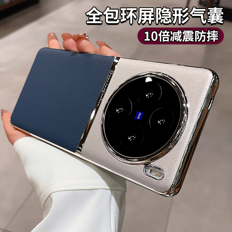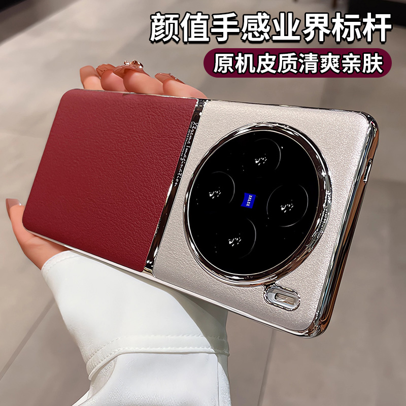 适用vivox100s手机壳vivox200pro电镀素皮x90s镜头全包x100ultra高端奢华保护套防摔por高级感男2024新款女薄