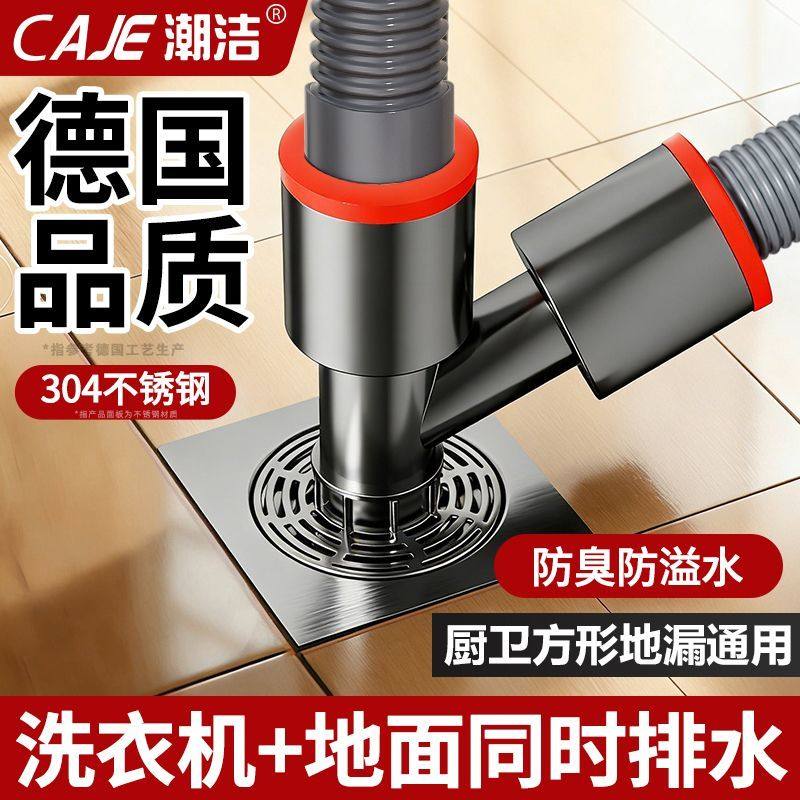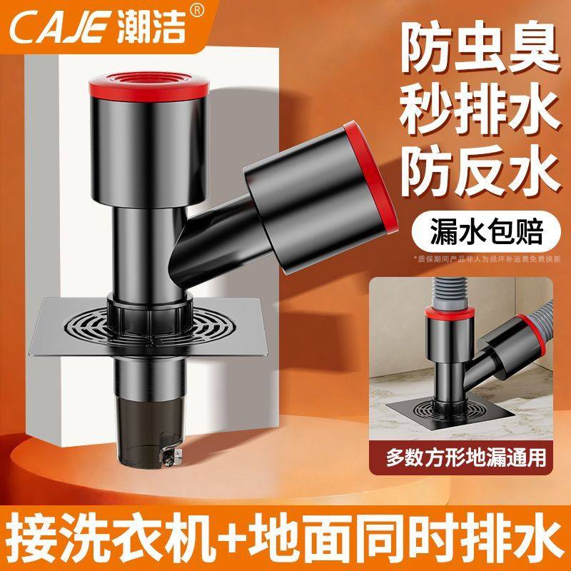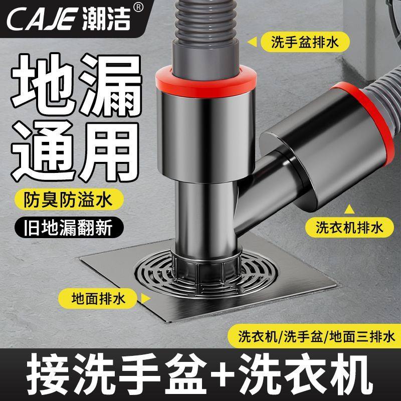 潮洁洗衣机地漏接头下水三通二合一专用排水管道分水器防溢水防臭