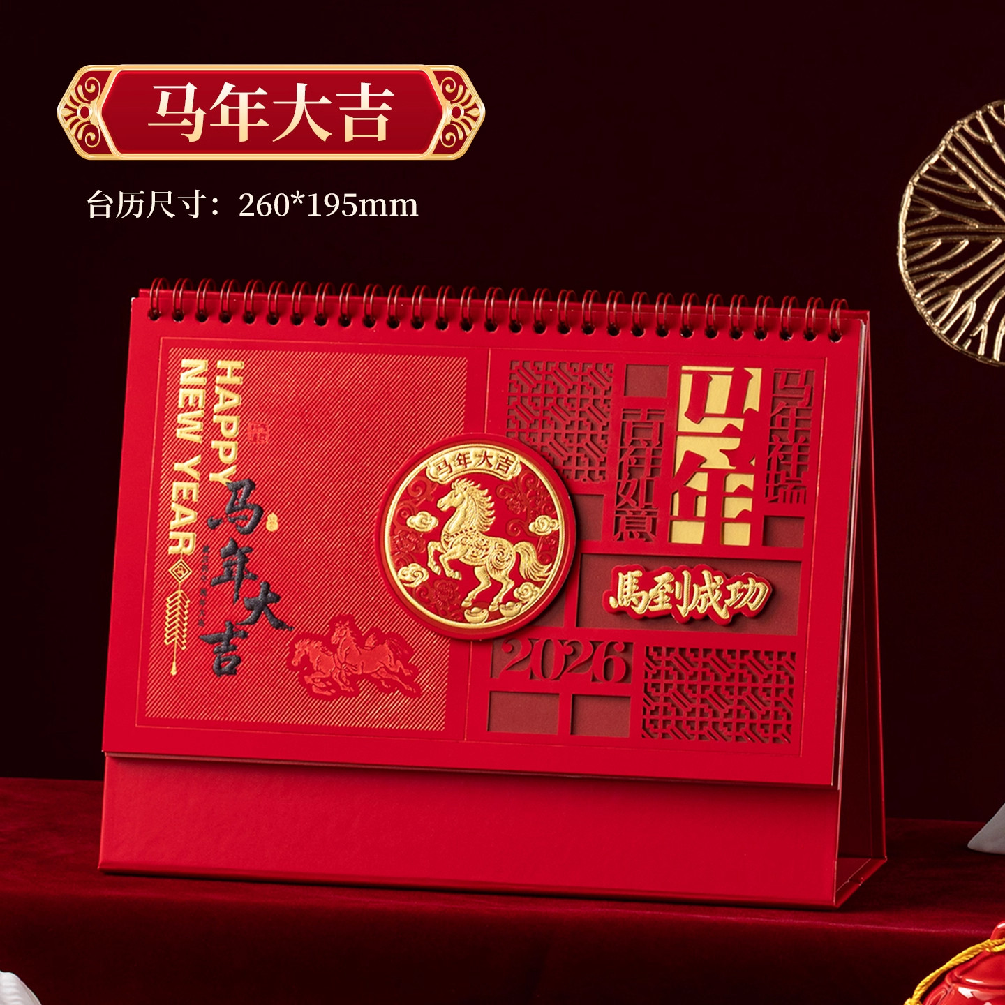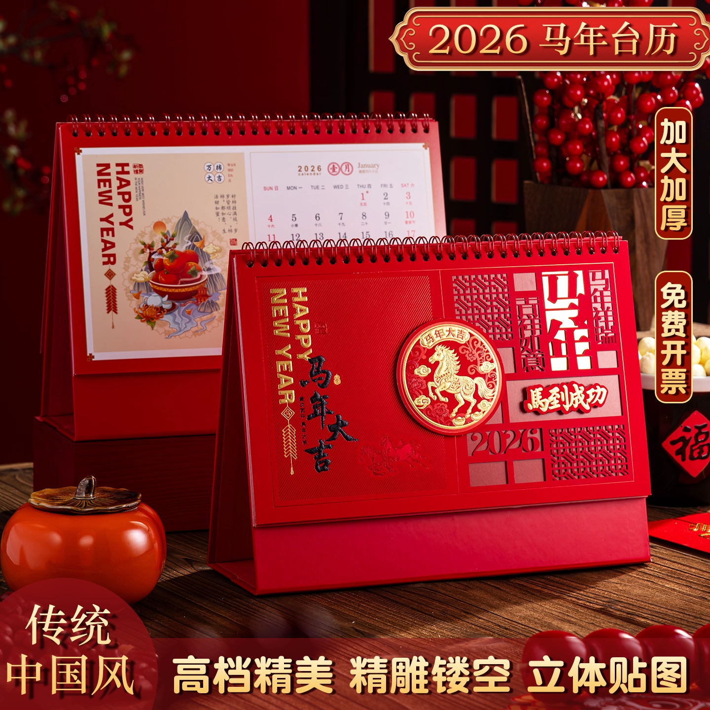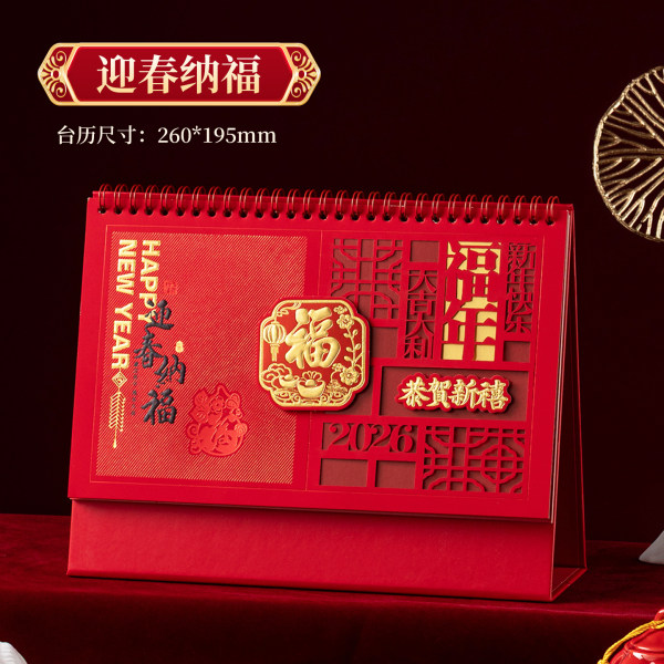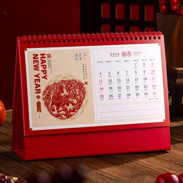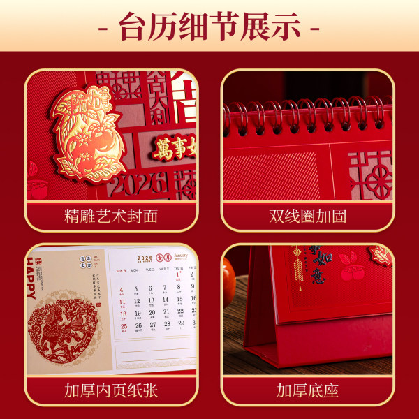 2026年马年新年台历新款日历桌面中国红红色喜庆吉祥三角制作大字体企业礼品国风商务马年创意月历日历过年