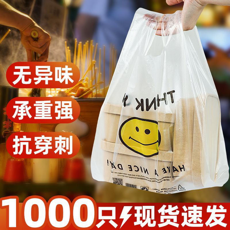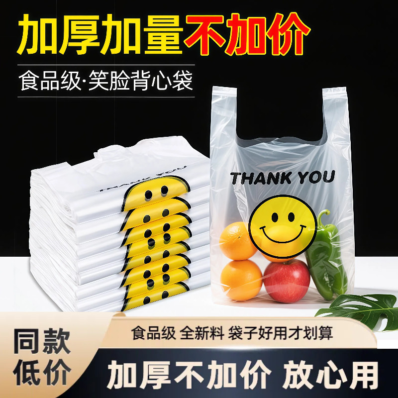 笑脸塑料袋食品打包加厚外卖包装背心手提袋批发方便袋透明全新料