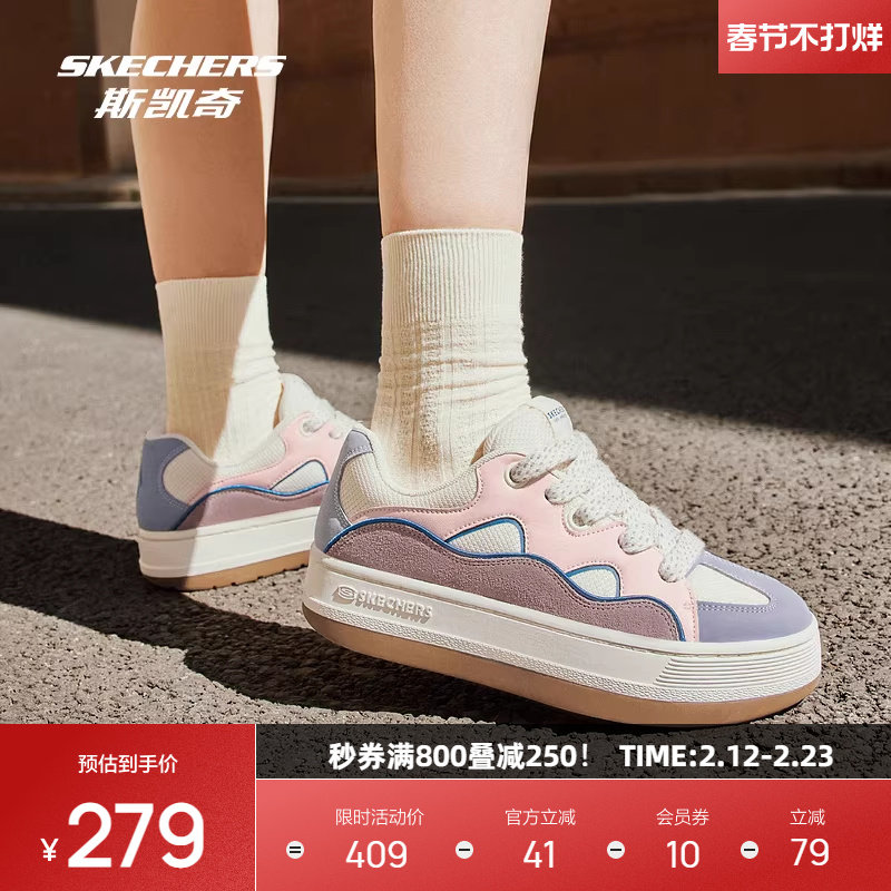 斯凯奇斑斓面包鞋新款女鞋板鞋厚底增高潮流百搭复古休闲鞋