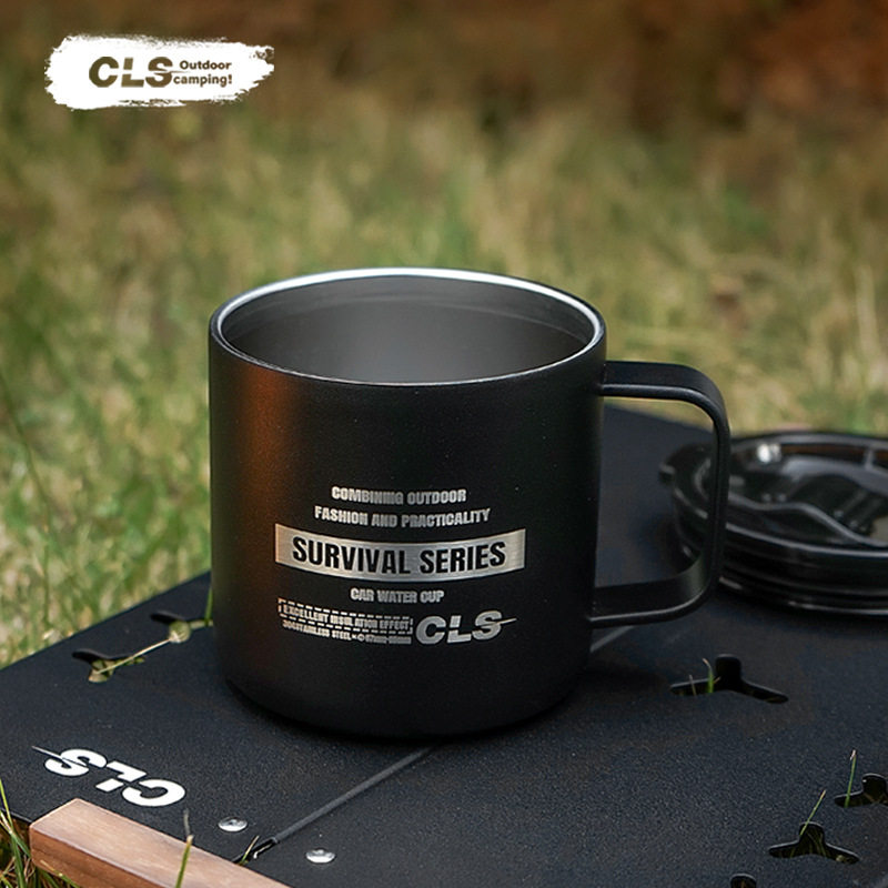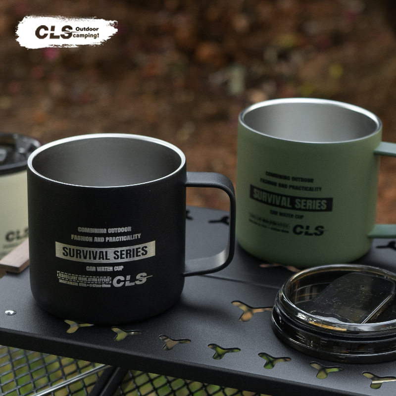 CLS户外露营杯登山野营战术水杯双层带盖不锈钢旅游杯保温咖啡杯