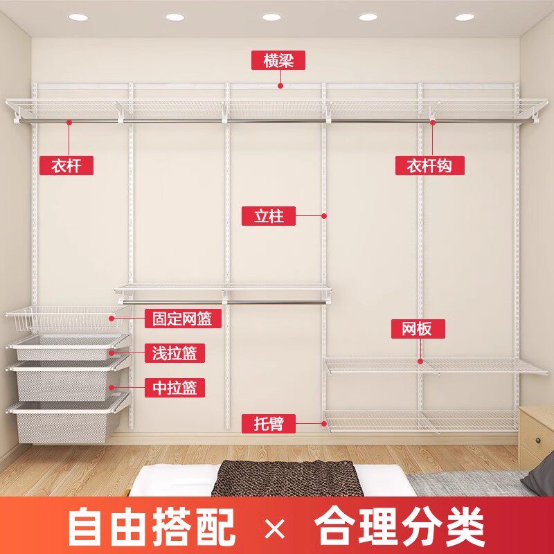 惠普登整体金属衣柜全屋定制走入式金属框架子储物间衣帽间衣橱