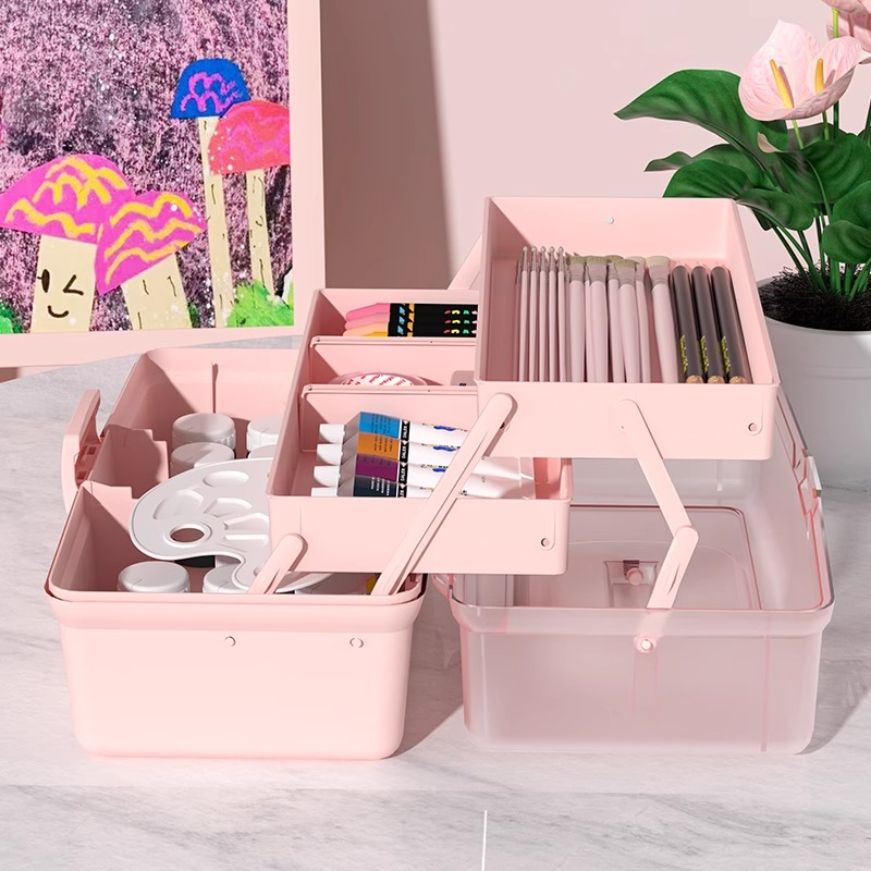美术箱医药箱化妆箱三层工具箱水粉画收纳箱专用整理箱子自由划分