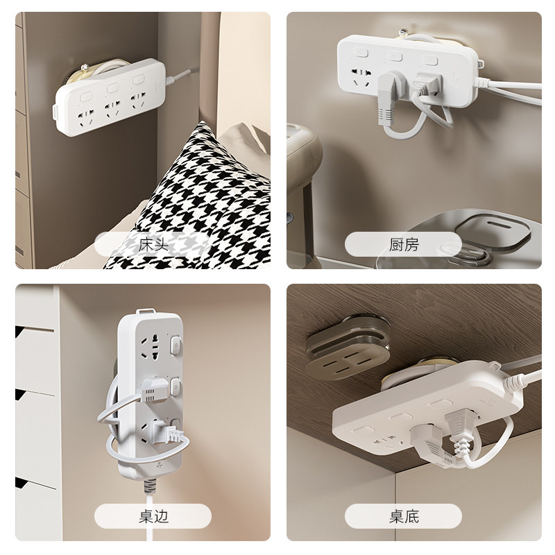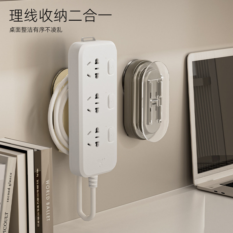 排插固定器吸盘家用壁挂式免打孔插座墙上收纳桌面整理神器插线板
