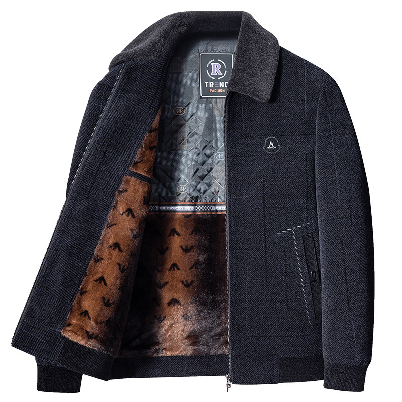 新款爸爸冬装外套加绒加厚中年男士雪尼尔夹克中老年男装保暖上衣