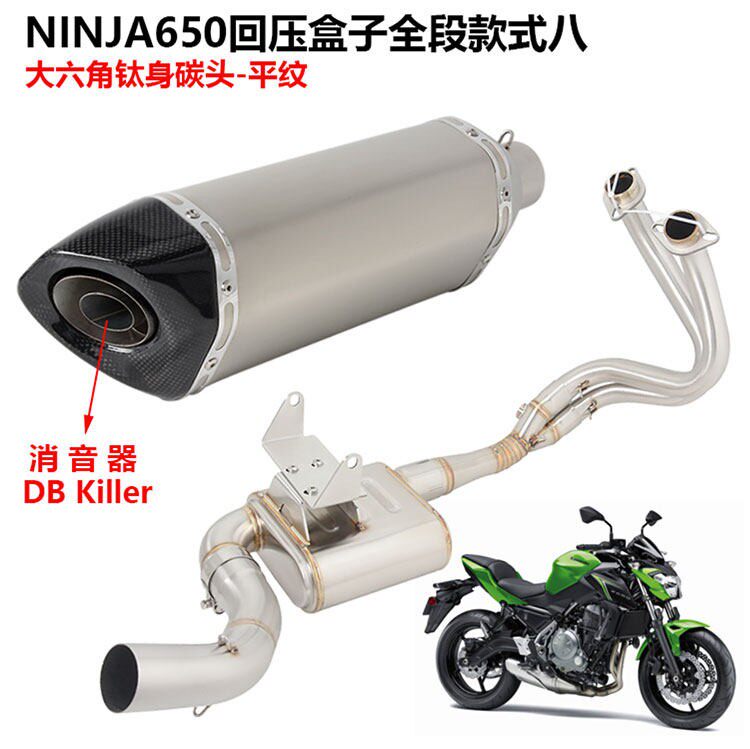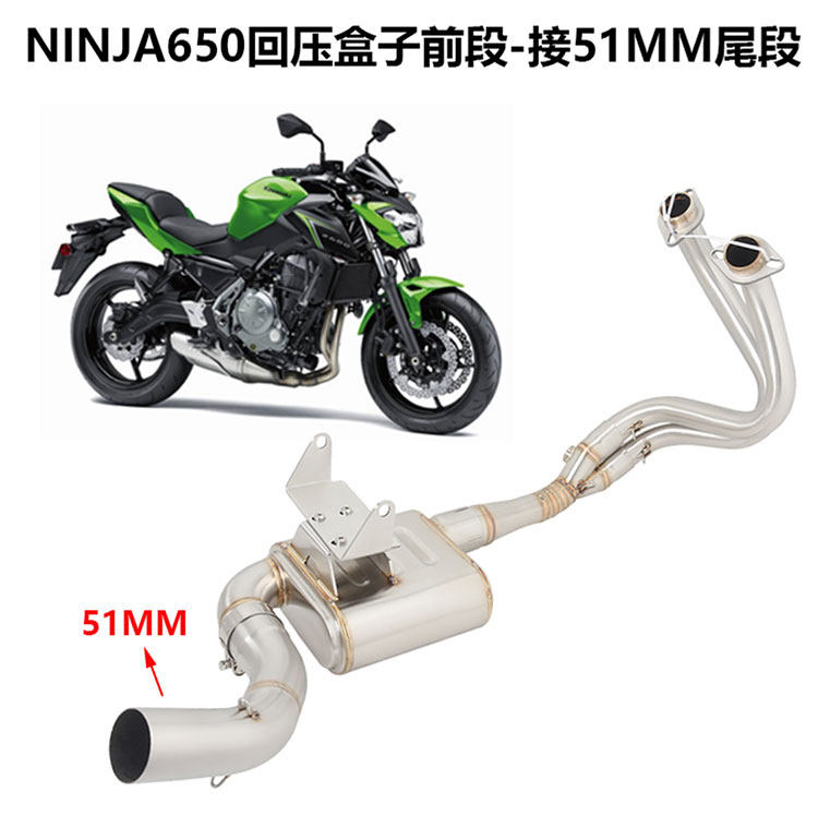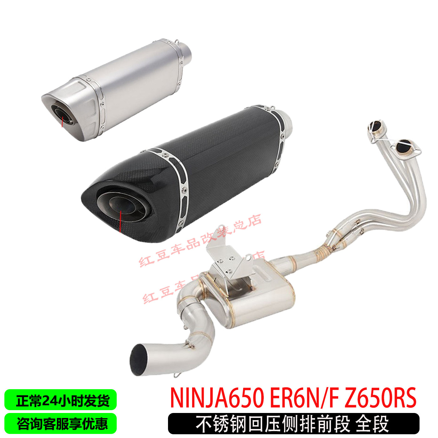 适用摩托车ER6N/F Z650RS回压盒子前段ninja650侧排排气管12-24年