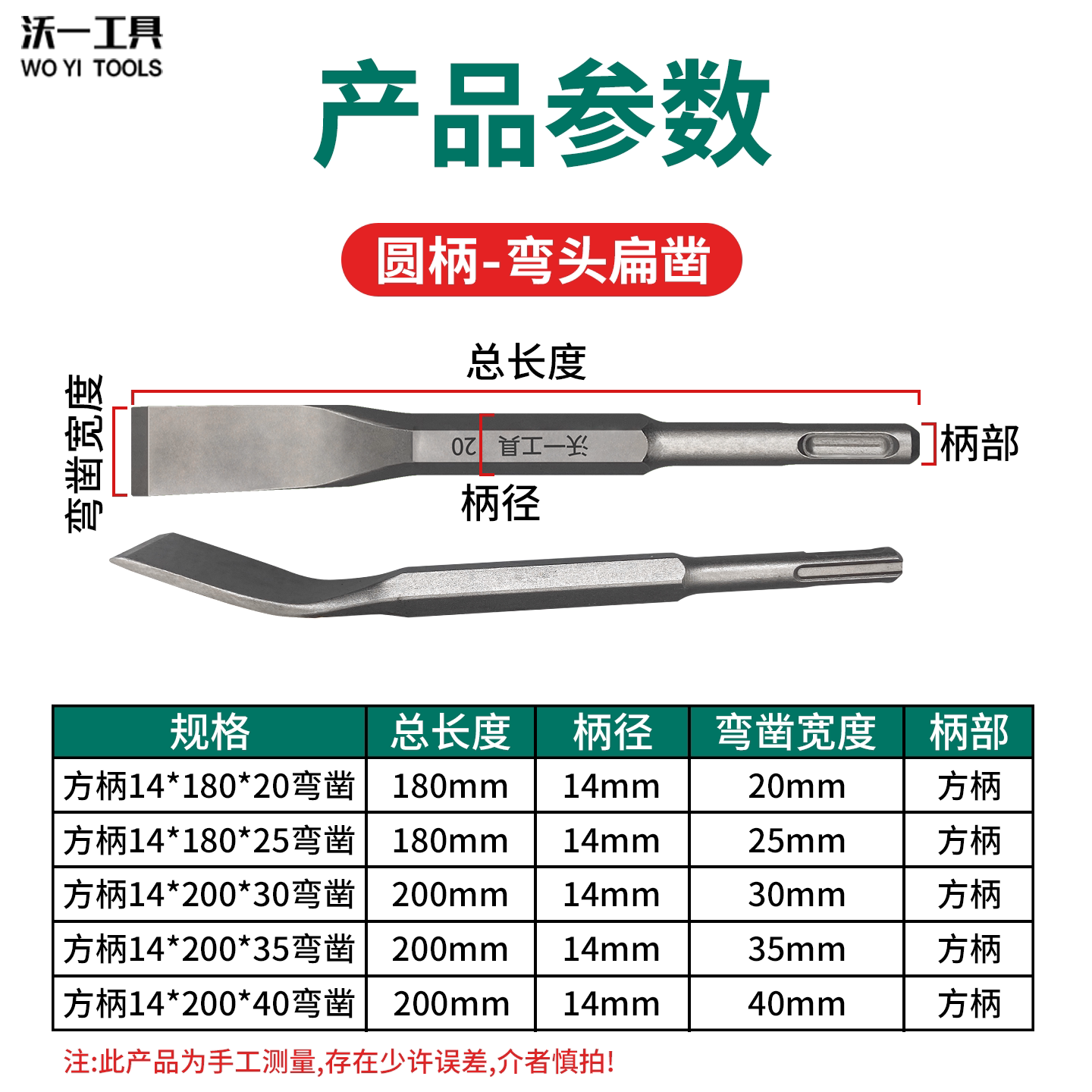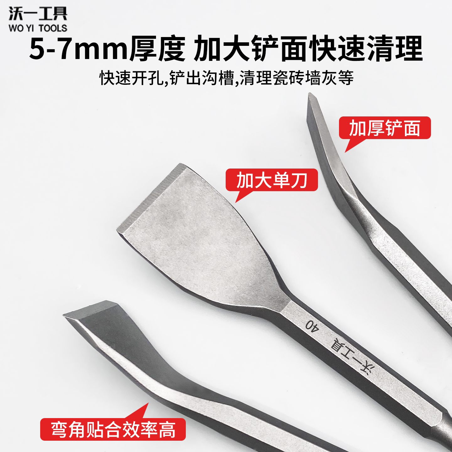 沃一弯头电锤电镐头冲击钻头方柄圆柄电锤凿水泥墙混凝土专用扁凿