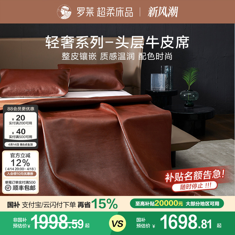 罗莱家纺床上用品轻奢品质1.8米头层牛皮软席子凉席红棕牛皮席