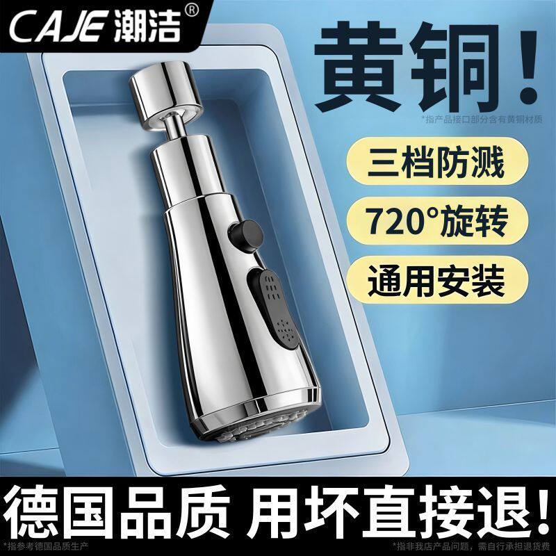 潮洁商用厨房水槽水龙头三档万向防溅头通用万能接头增压延伸神器