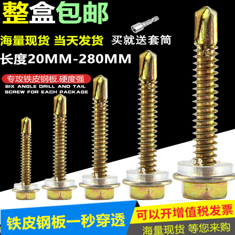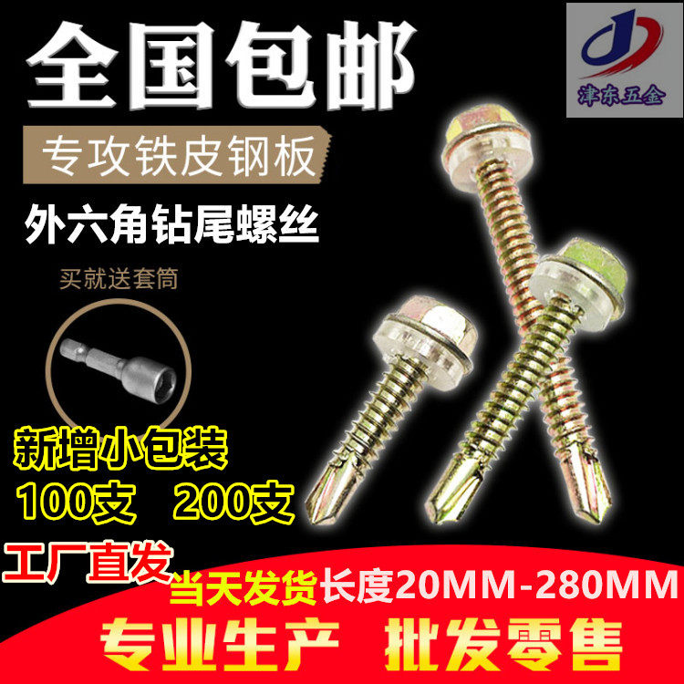 包邮外六角钻尾螺丝彩钢瓦螺钉燕尾螺丝钉自钻自攻钻尾螺钉m4.8m6