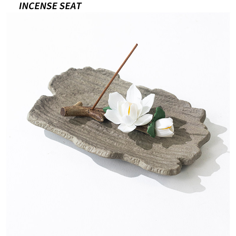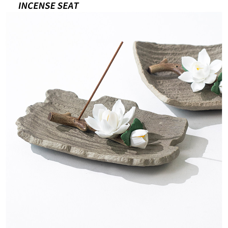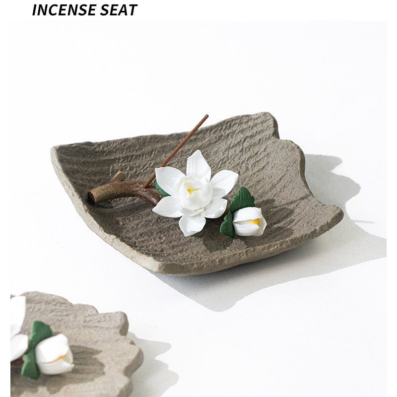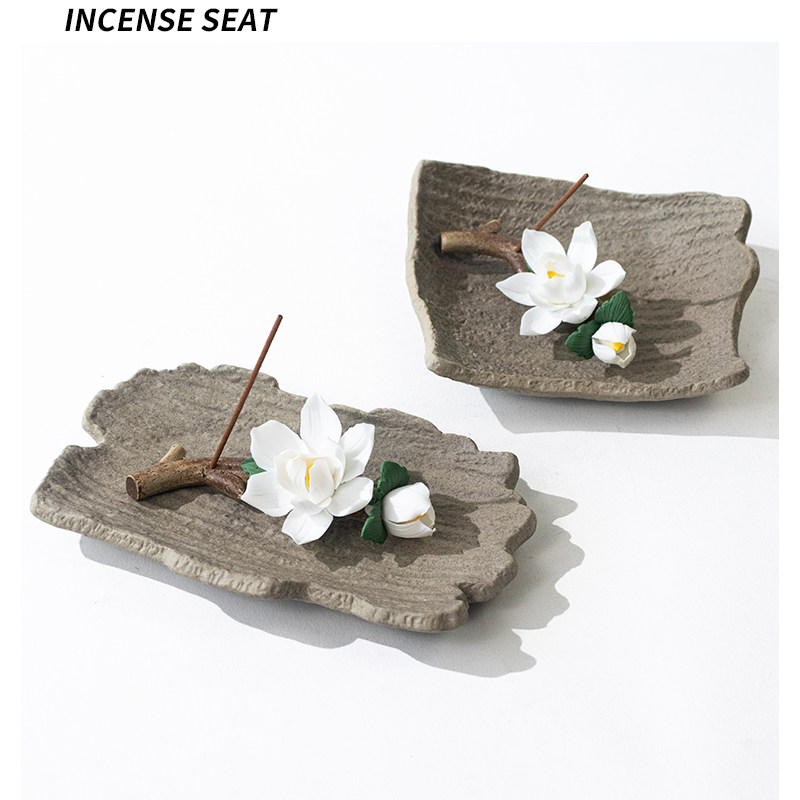创意陶瓦线香香托手工栀子花香插香座家居香盘摆件装饰品熏香盘