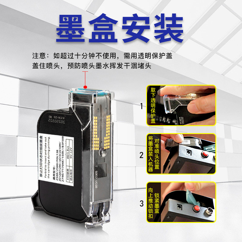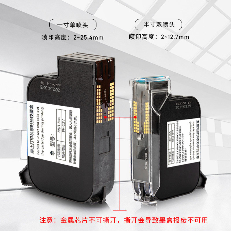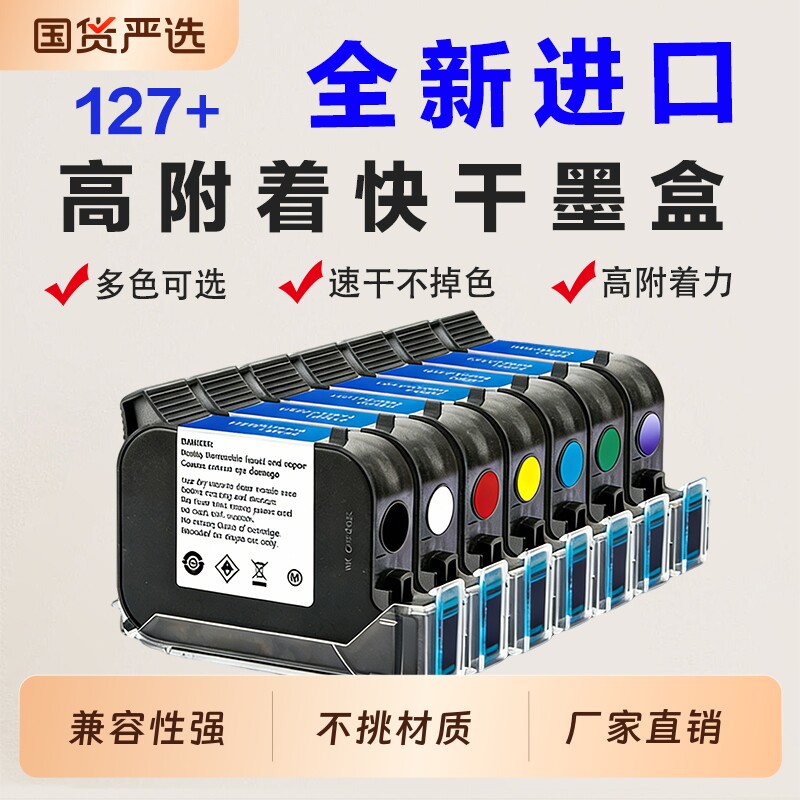 全新进口喷码机127+墨盒12.7mm通用快干高附着力墨盒光滑面适用于惠普路宝中敏顾晨川普普法森手持打码机喷头