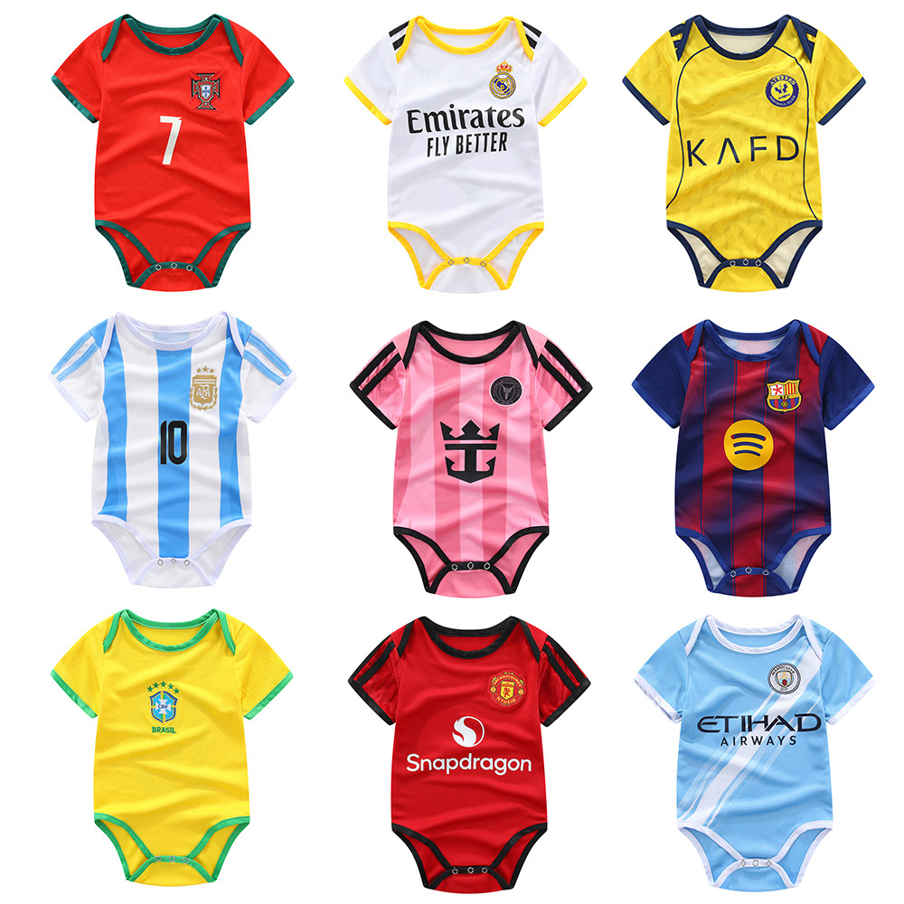 婴儿连体球衣阿根廷梅西巴萨葡萄牙C罗皇马力曼联爬服速干足球服
