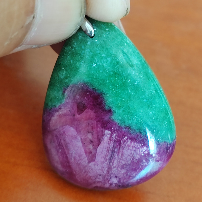 天然红绿宝石吊坠高货纯银扣头原石裸石首饰品项链祖母绿无烧无染