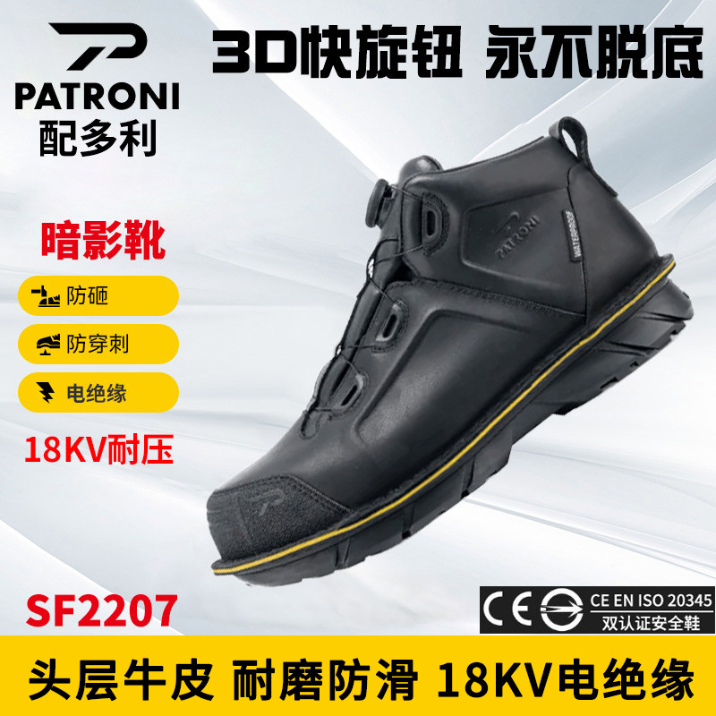 Patroni配多利安全鞋男SF2207暗影靴真牛皮绝缘防砸防刺穿劳保鞋
