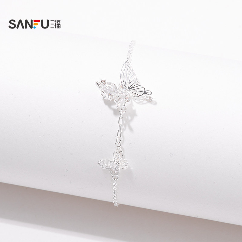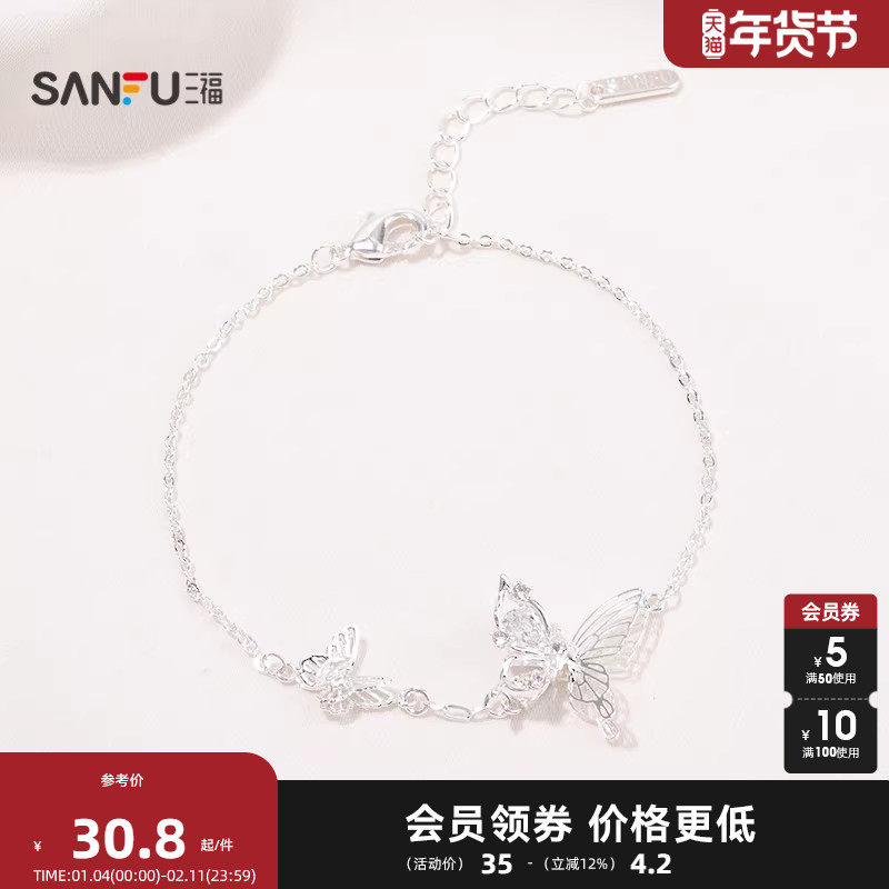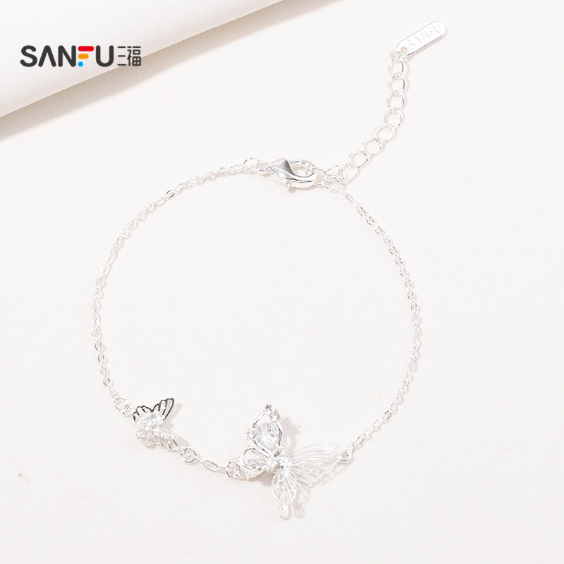 三福春意亮银手链单条 清新优雅时尚首饰配饰链条
