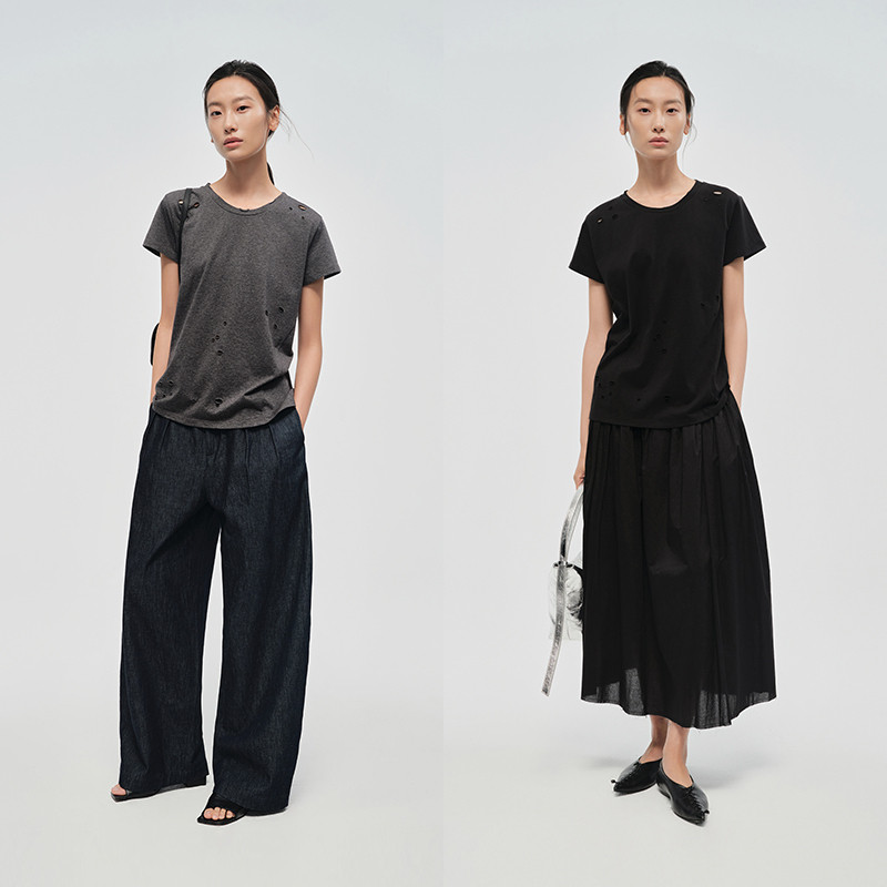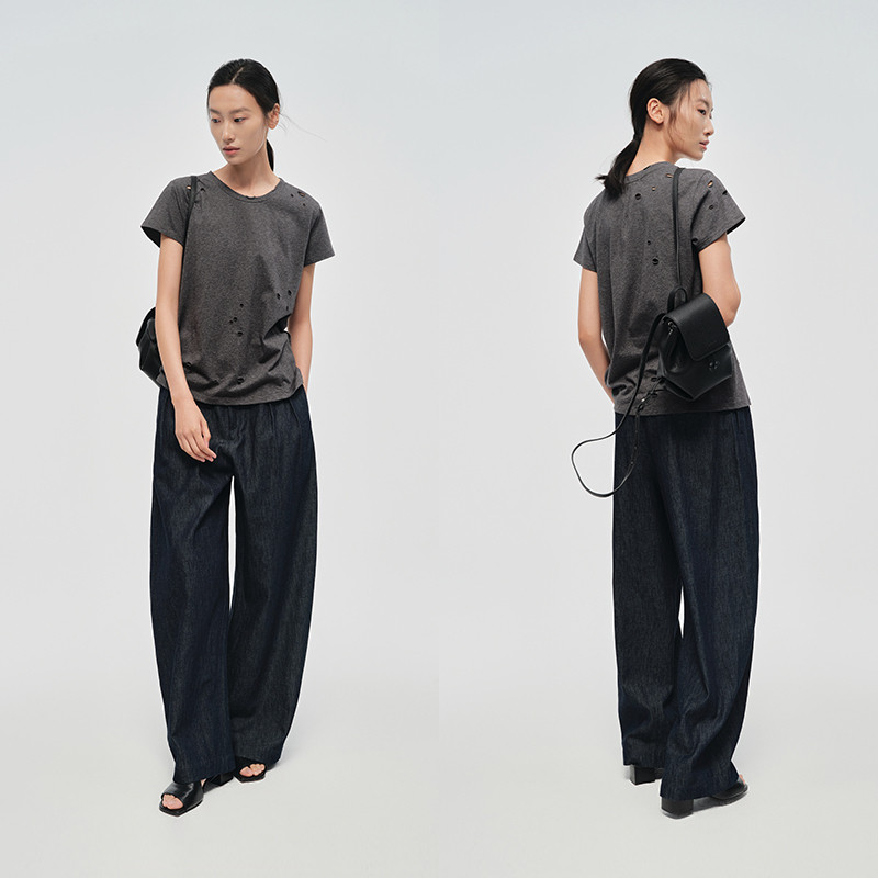 indicia标记纯棉破洞百搭多色T恤美拉德柔软上衣时尚夏季女装