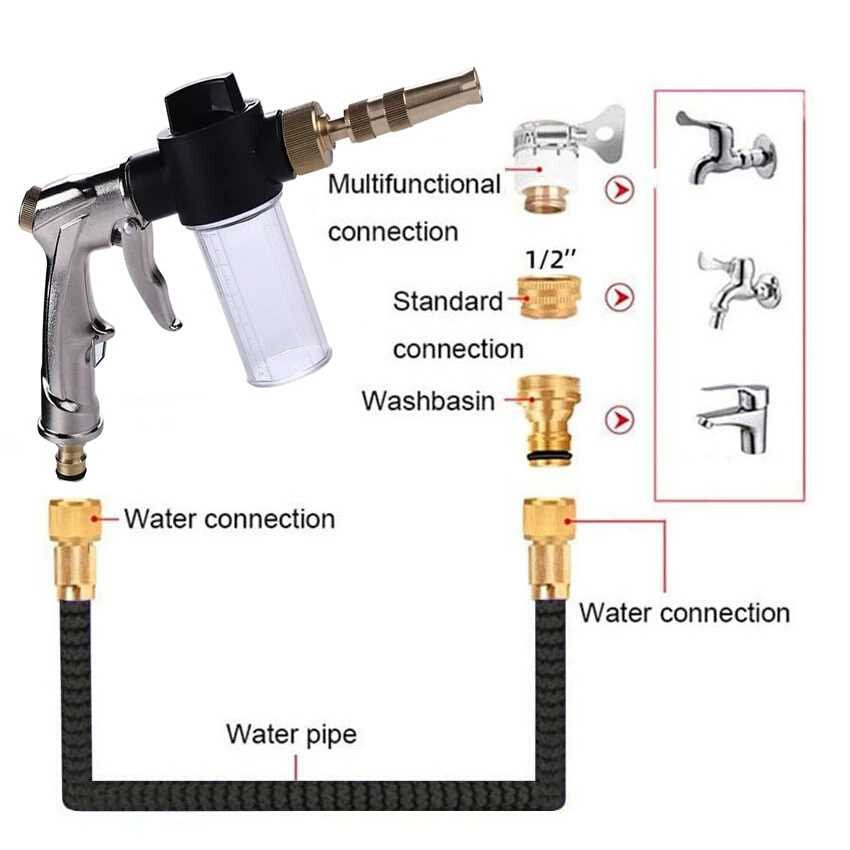 High Pressure Water Gun Garden Hose Spray Nozzle Metal Foam