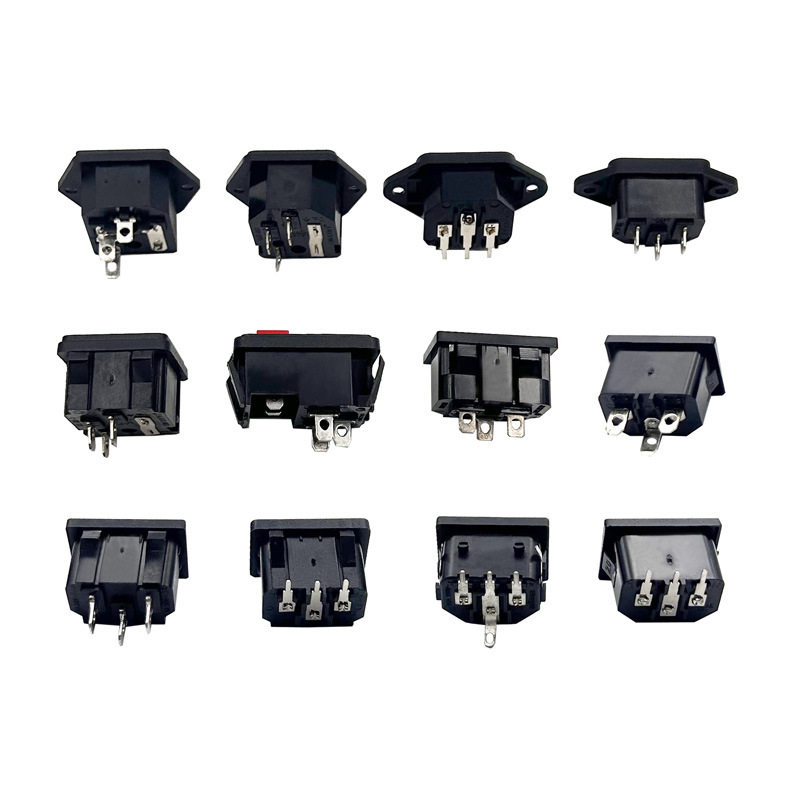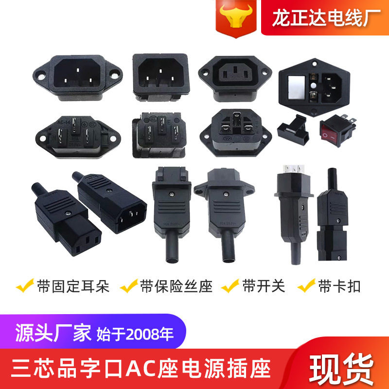 带开关保险丝座子 带卡扣品字口AC座 公母对接三孔三芯AC电源插座