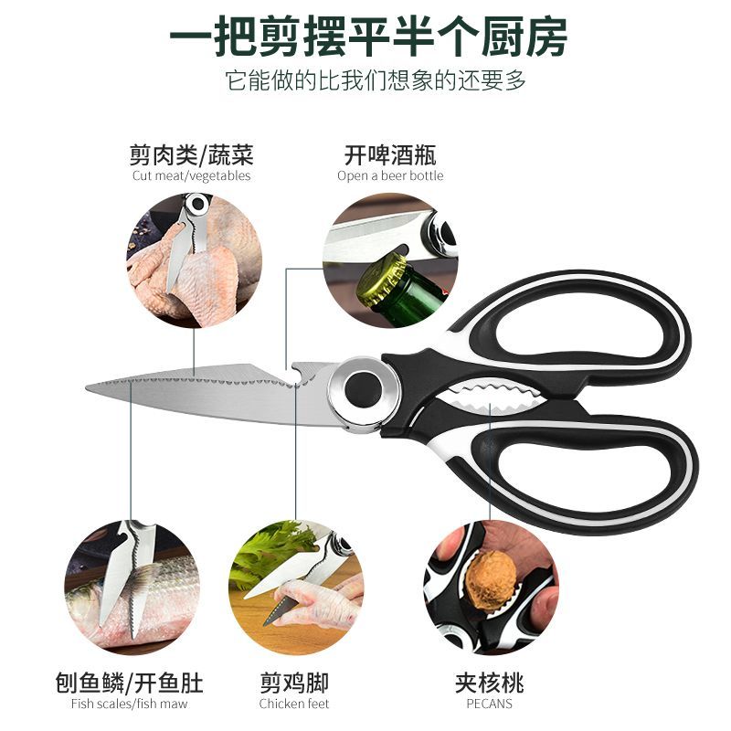 不锈钢强力德国鸡骨厨房家用剪刀加厚剪肉多功能多用日用熊猫剪刀