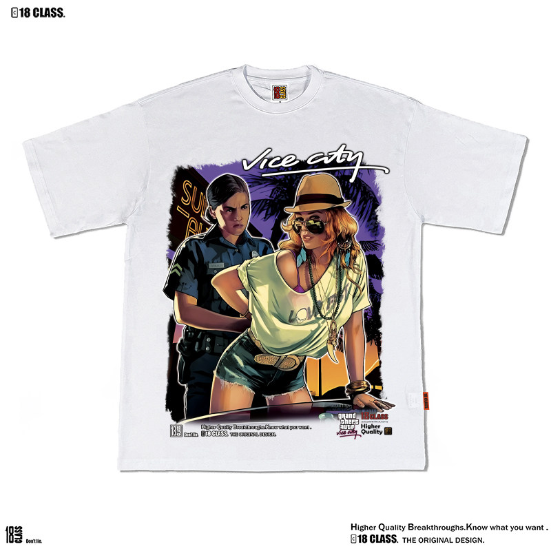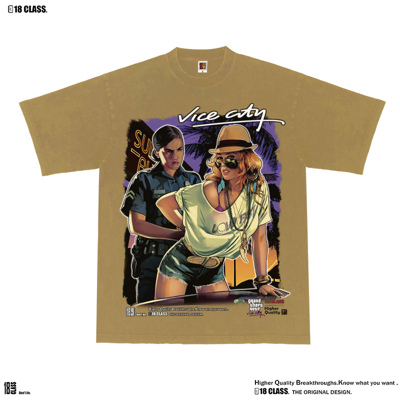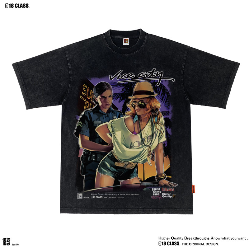 GrandTheft Auto Vice City侠盗猎车罪恶都市美式街头水洗短袖T恤