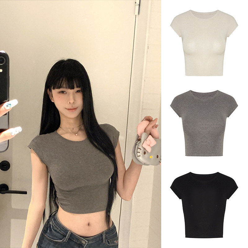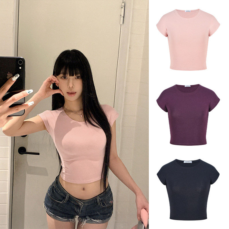 MosesQueen魔西女王美式辣妹短款露脐短袖t恤紧身显瘦小飞袖上衣